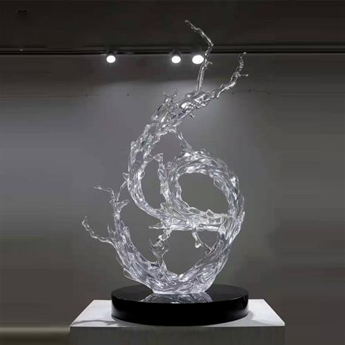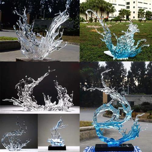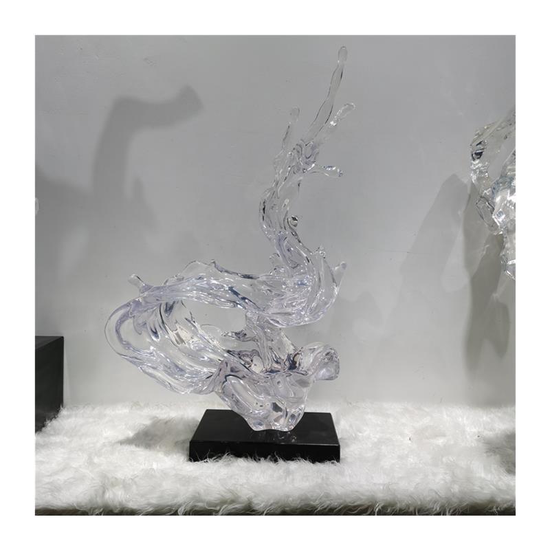创意大型浪花雕塑酒店大堂餐厅轻奢透明树脂艺术品落地摆放定制