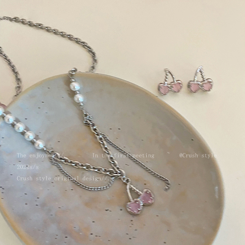 冷淡风珍珠金属拼接项链女甜酷风辣妹耳环爆款轻奢小众锁骨链潮