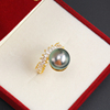 S925纯银电镀K金简单大方珍珠戒指开口空托DIY配饰配件气质送礼女