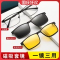 磁吸太阳镜男偏光变色两用磁铁套镜开车墨镜可配有度数近视眼镜女