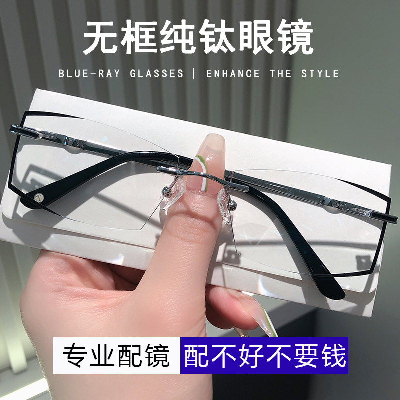 近视眼镜男大脸配高度数显薄镶黑线超轻纯钛变色防蓝光辐射眼睛女