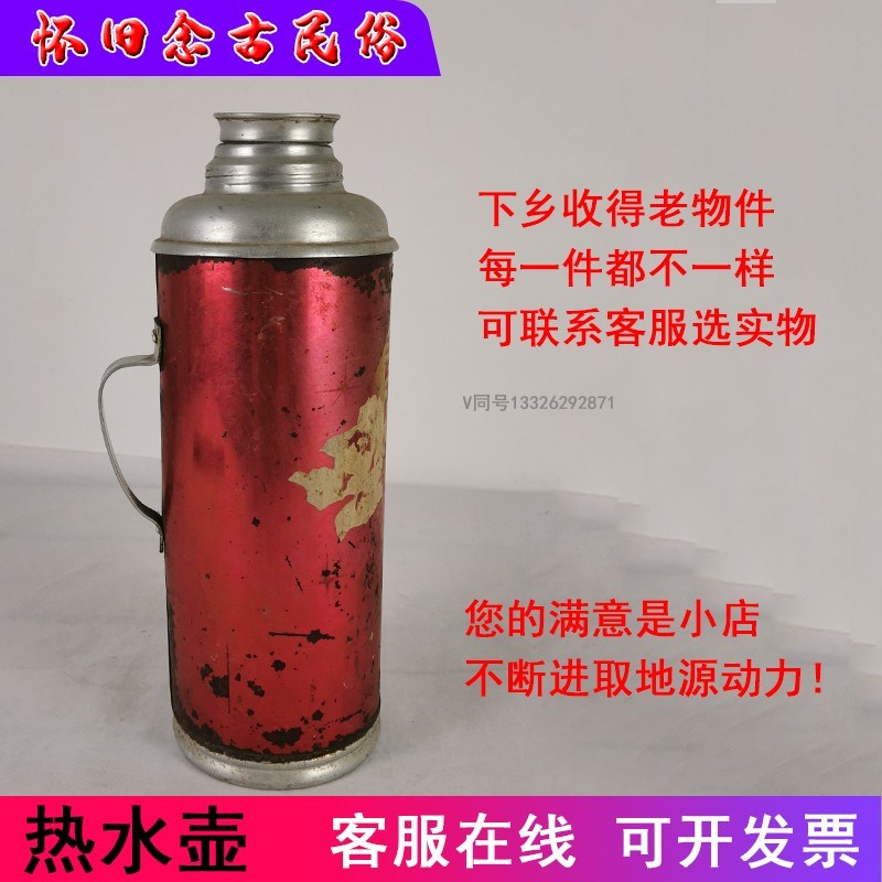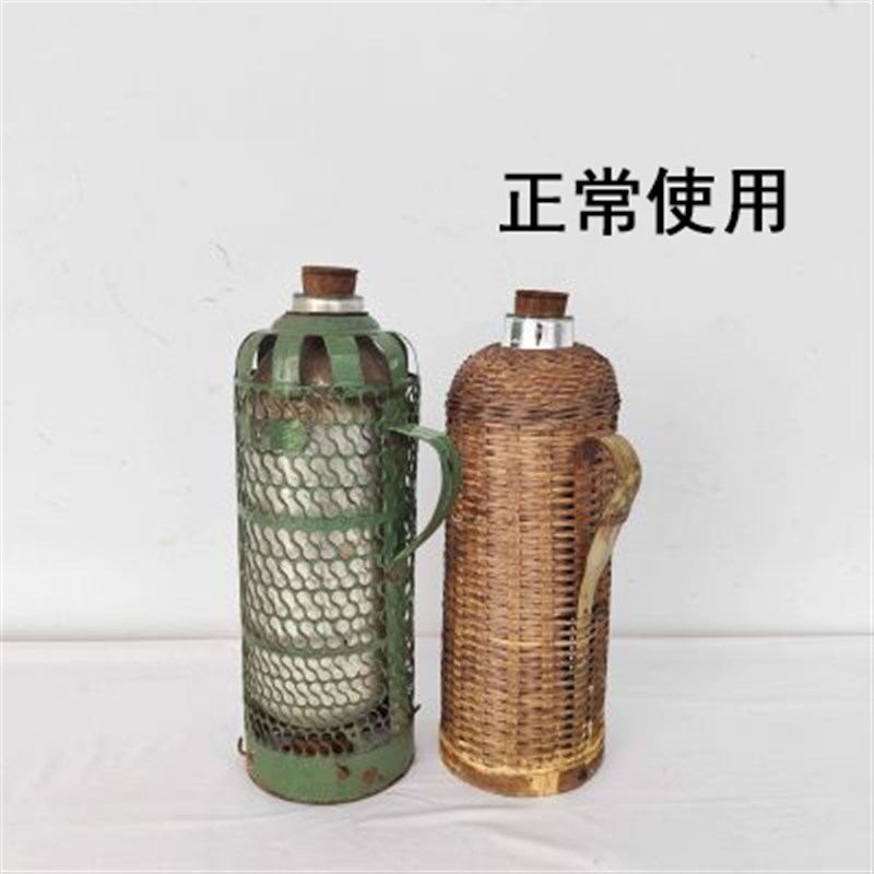 速发怀旧老物感老式年代件竹编暖瓶绿色皮铁绿皮暖壶农村民俗装饰