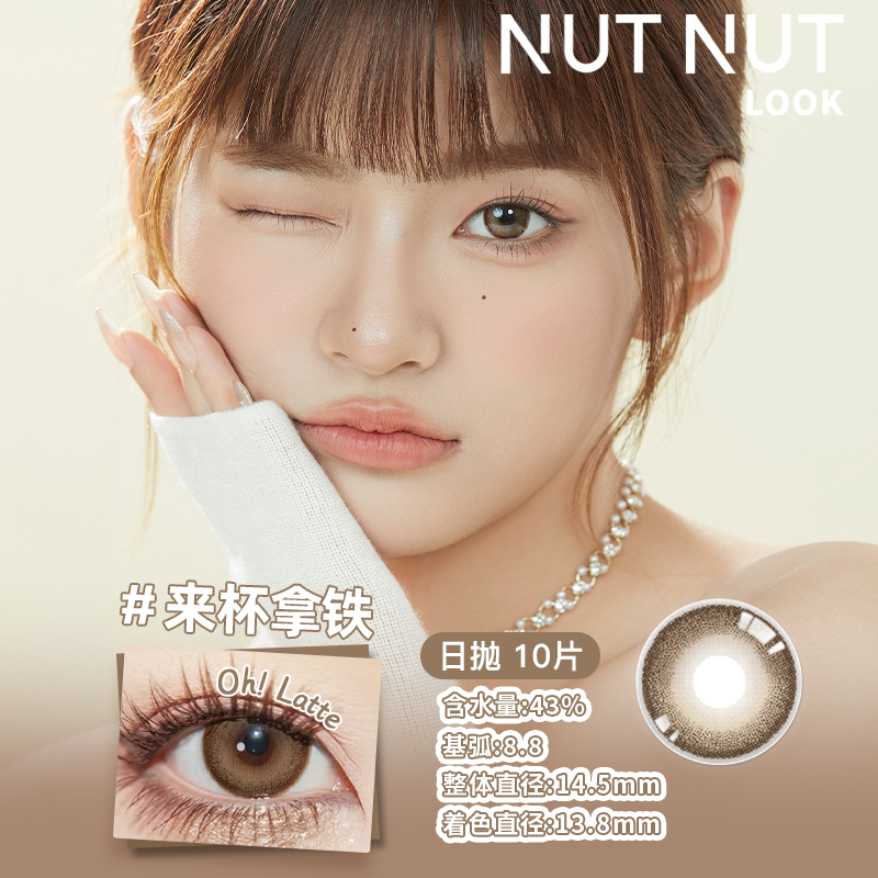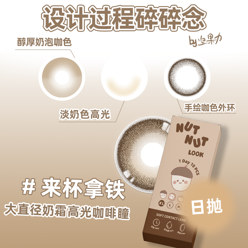 【来杯拿铁】坚果力美瞳日抛10片高光手绘款咖啡色美瞳NUTNUTLOOK