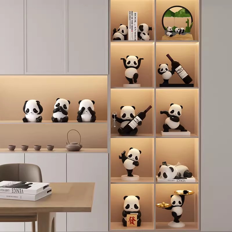 高端大气客厅熊猫酒柜摆件轻奢家居电视柜玄关办公桌面工艺装饰品