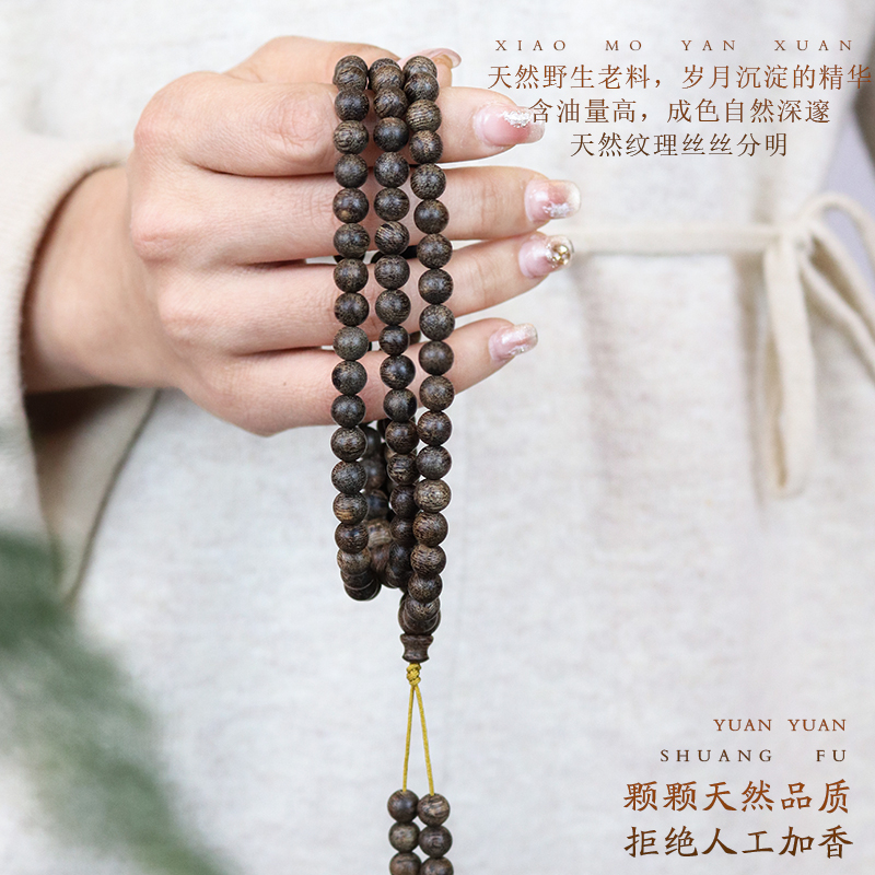 天然野生沉香文莱黑棋奇楠高级佛珠手链0.7*108颗九分沉水男女款