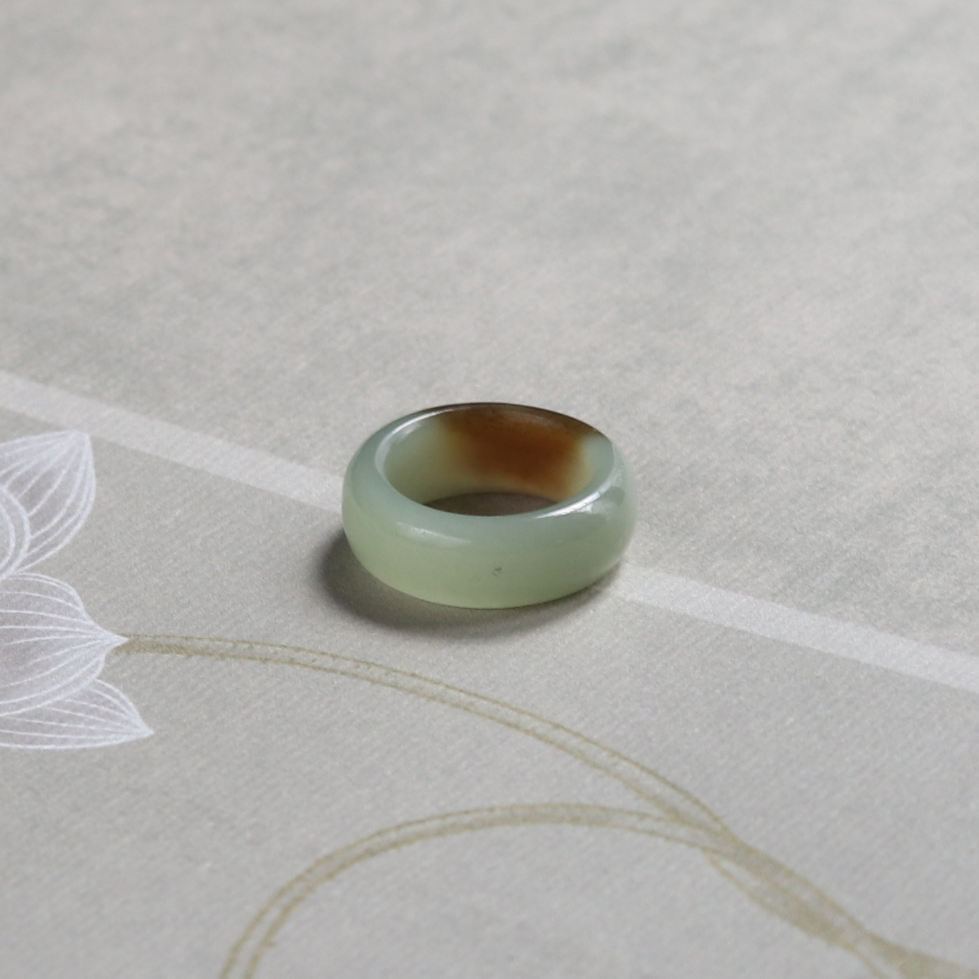 14号一口糖指环天然玉石糖青戒指和田玉圆条素圈平安戒带证书