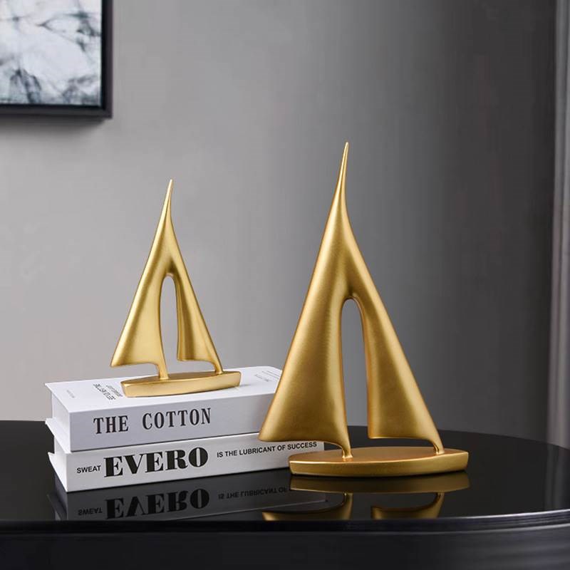 创意中式金色帆船一对书柜客w厅装饰品现代软装酒柜书房桌面摆件