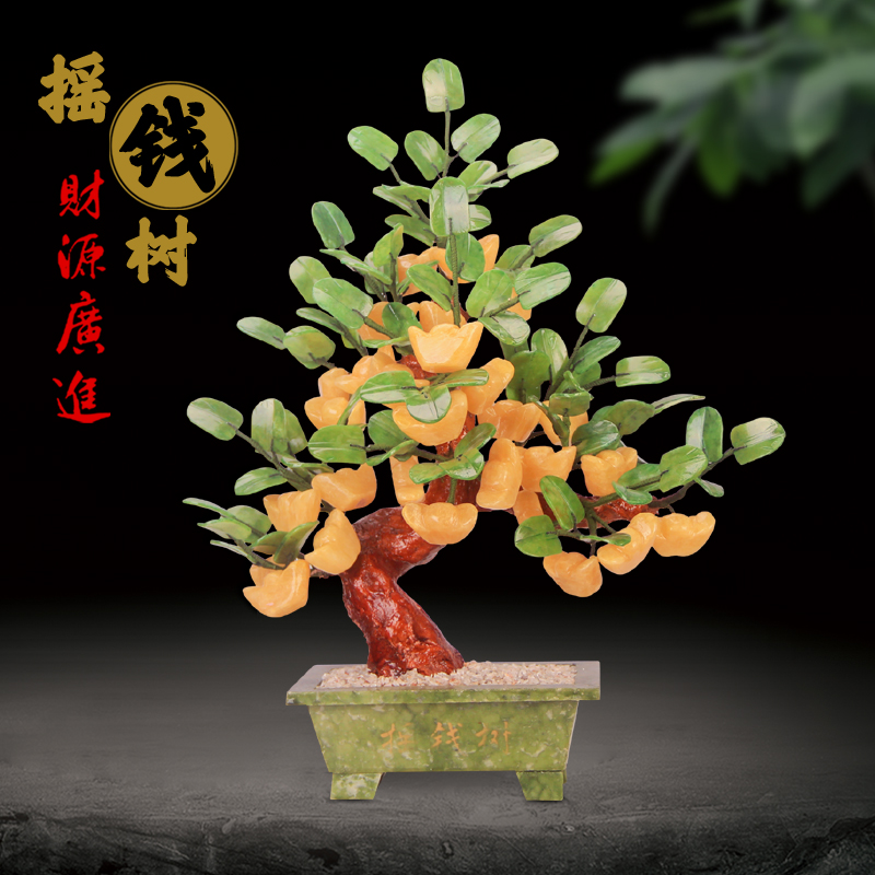 玉石雕刻元宝发财树客厅家居饰品聚财招财玉器盆景工艺品桌面摆件