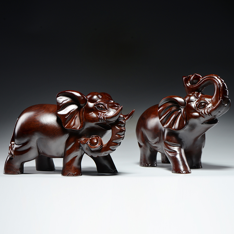 黑檀木大象雕刻摆件是实木一对象家居装饰工艺品业新居乔迁送礼