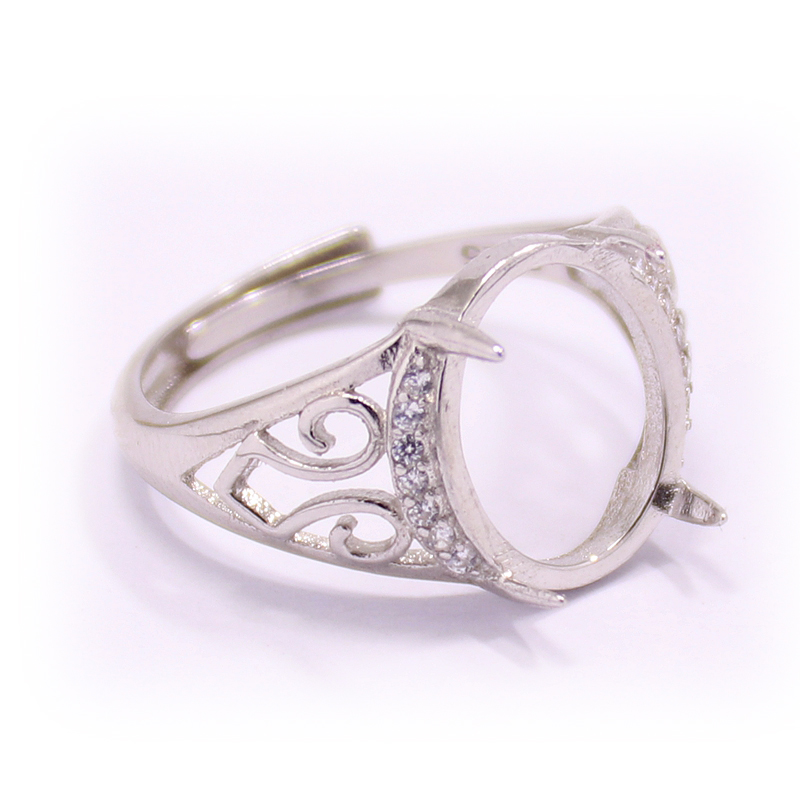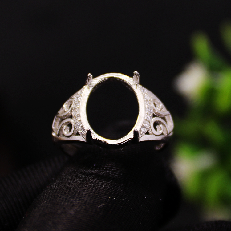 S925纯银戒指空托时尚女款四爪DIY蜜蜡松石琥珀玉石镶嵌托11*13.5