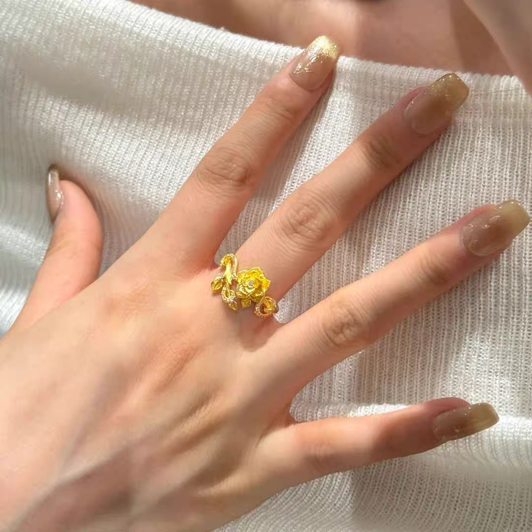 金包银玫瑰花戒指女时尚轻奢镶钻小香风精致百搭花朵指环