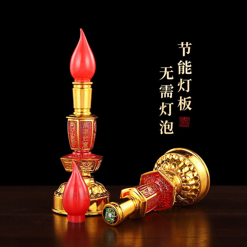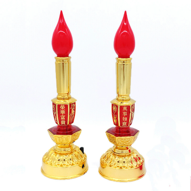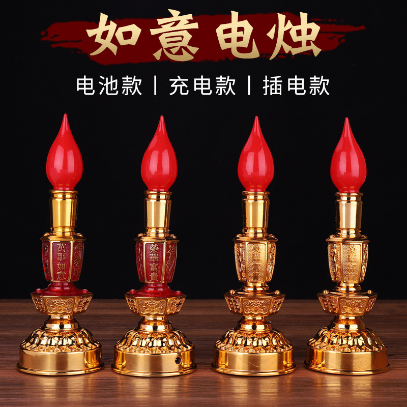 电子蜡烛灯烛台灯电池充电长明灯灯座财神灯家用佛前佛灯供灯一对