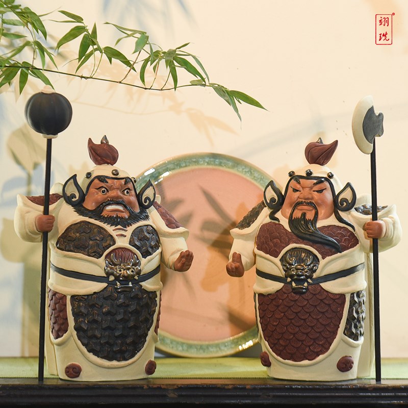 石湾公仔陶瓷门神摆件哼哈二将中式家居客厅玄关电视柜工艺装饰品