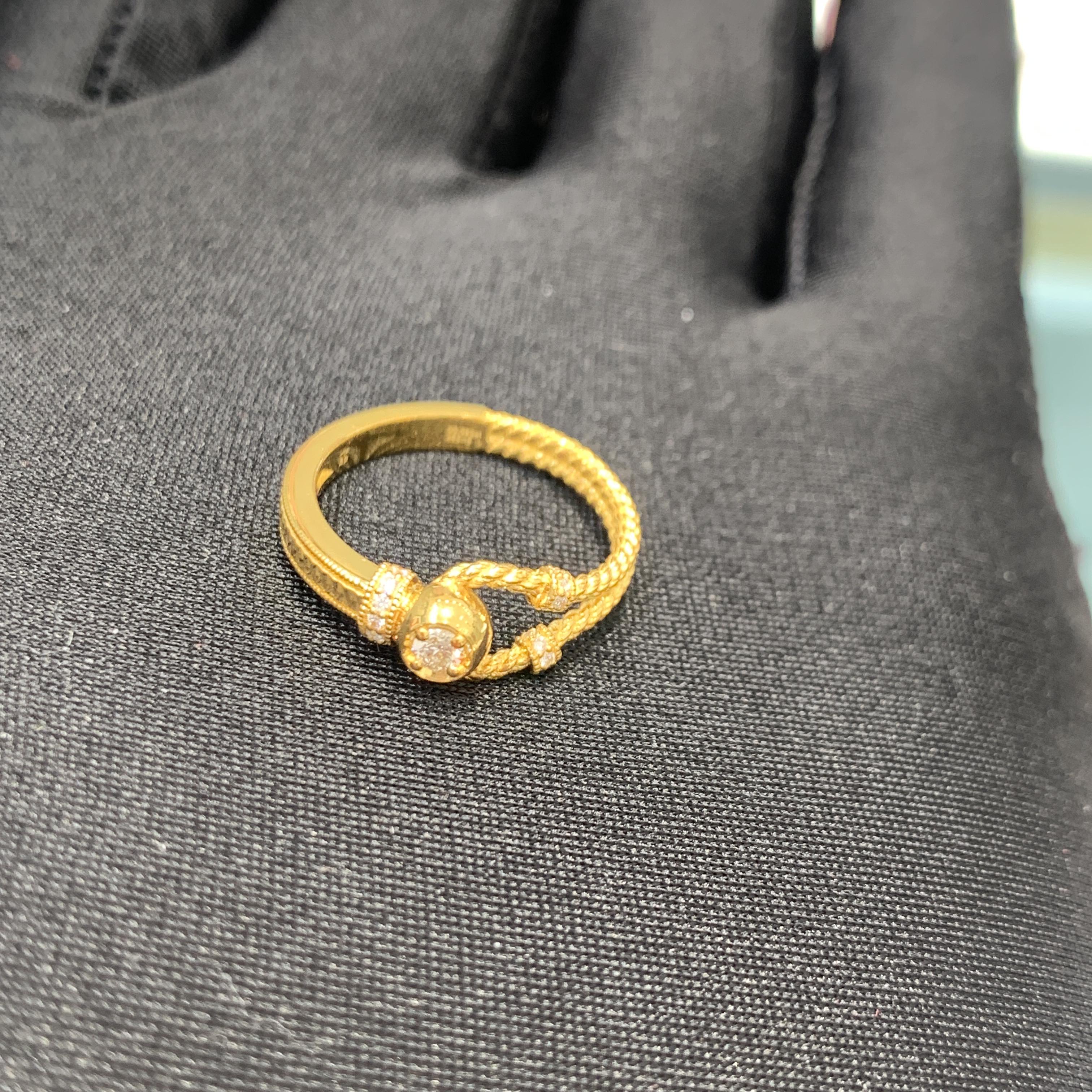 周大福代购 ING系列足金C型弹簧马蹄扣黄金钻石戒指 定价7折RU511