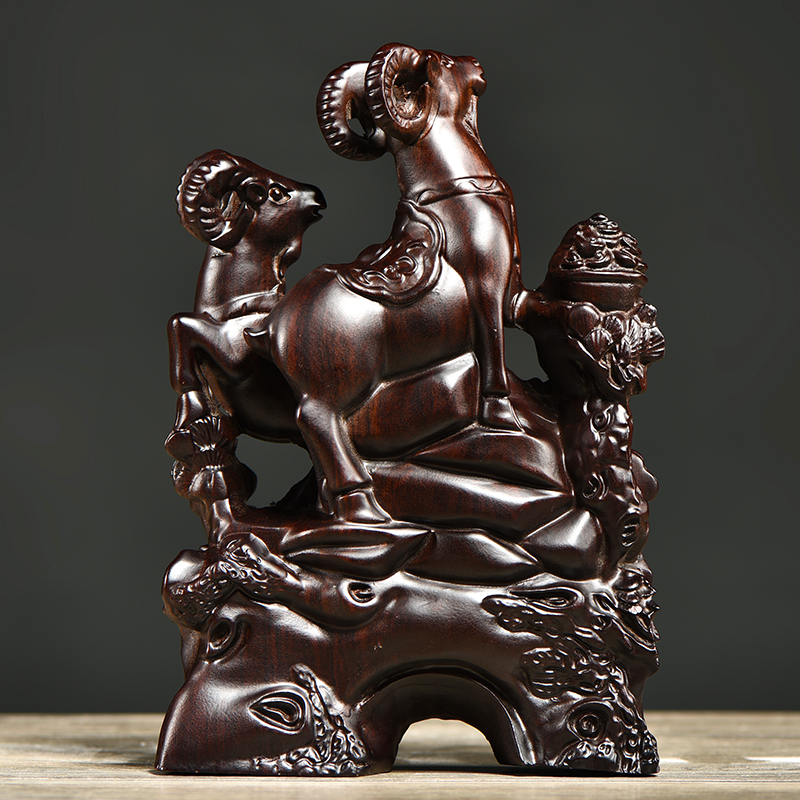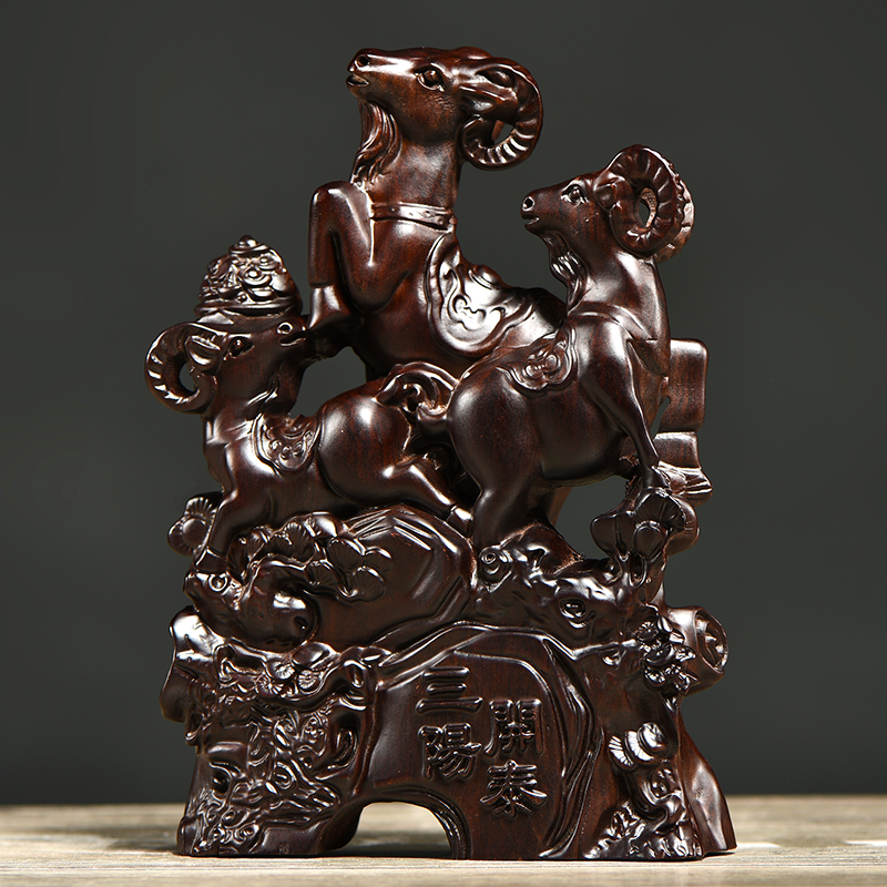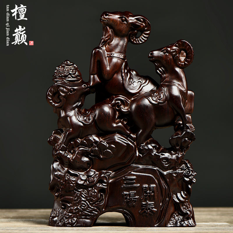 黑檀木雕三羊开泰摆件实木质雕刻三阳开泰新中式家居客厅装饰礼品