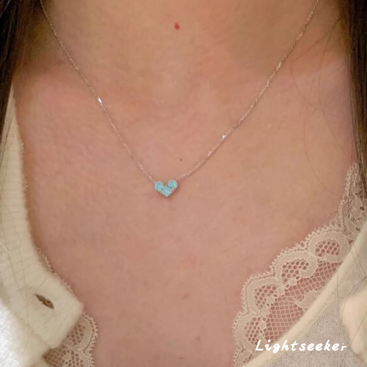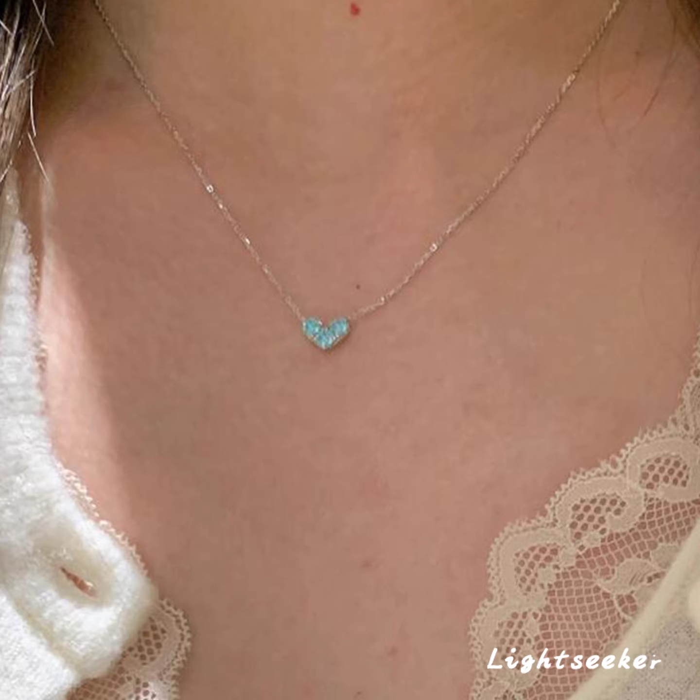 爆闪蓝色爱心项链女2025新款配饰高级感轻奢小众韩系小清新锁骨链