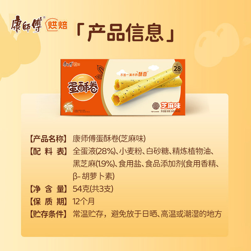 康师傅蛋酥卷54g*6盒蛋卷整箱糕点心奶油芝麻味办公室小零食早餐