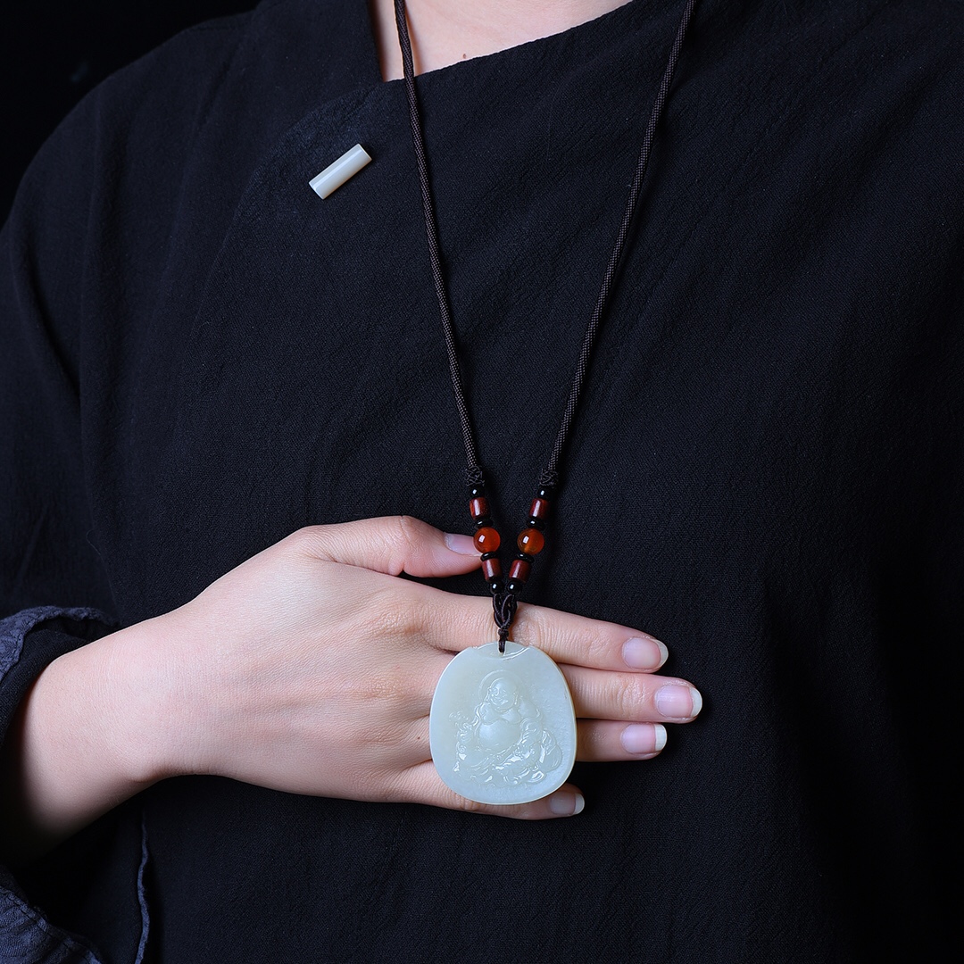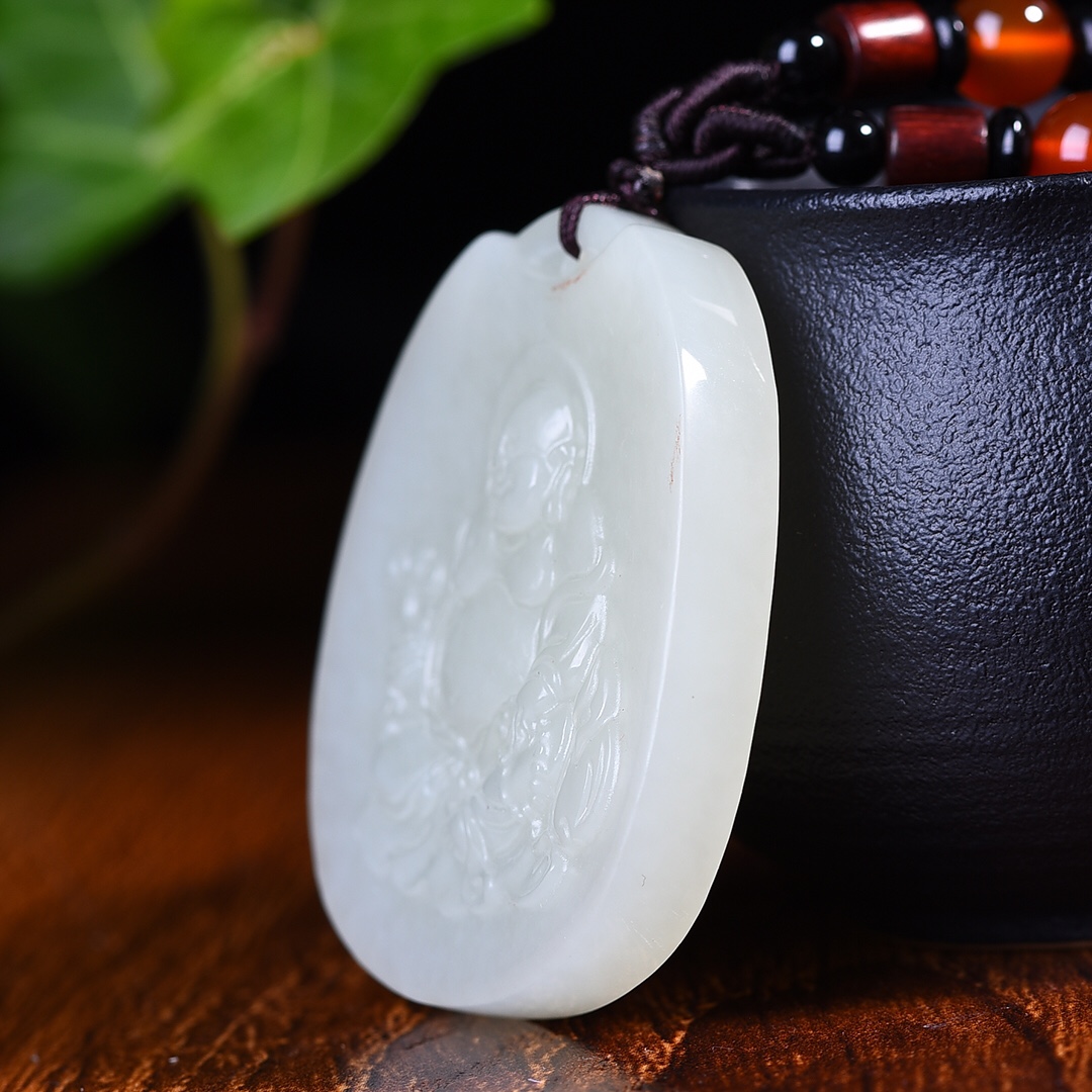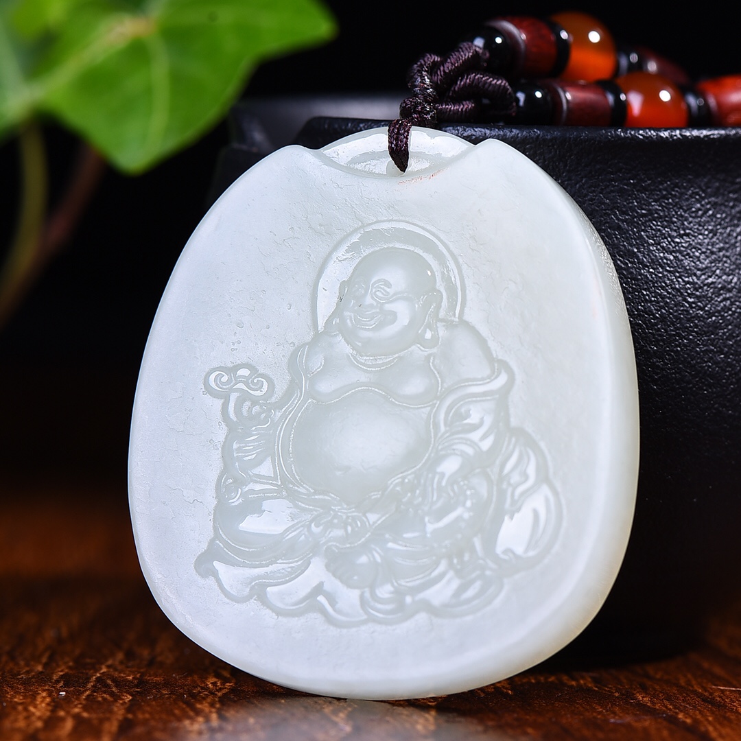 新疆和田玉羊脂玉白玉青白玉弥勒笑佛公吊坠男女士款挂件玉坠玉佩