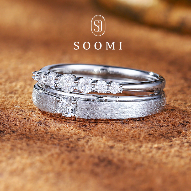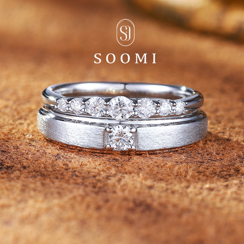 【新品 日月同辉】培育钻石情侣对戒D色白钻925银简约戒指礼物