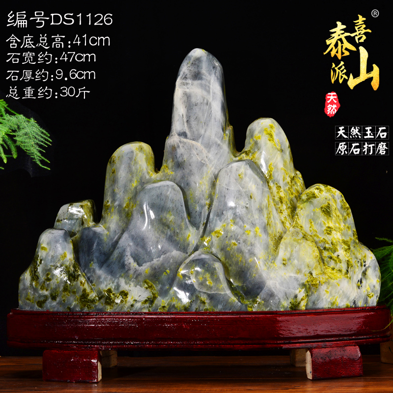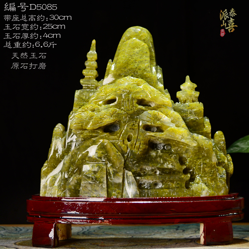 泰山派喜 补后空靠山石 五指山摆件 绿色玉石原石假山摆件