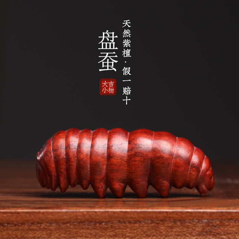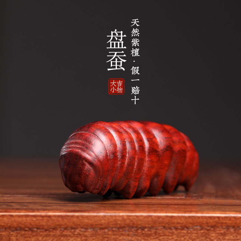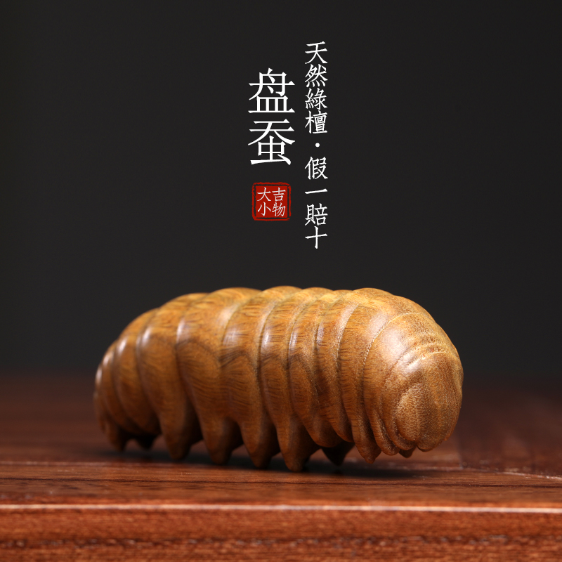 天然绿檀紫檀木雕蚕宝宝创意文玩蚕虫子手把件盘玩装饰桌面小摆件