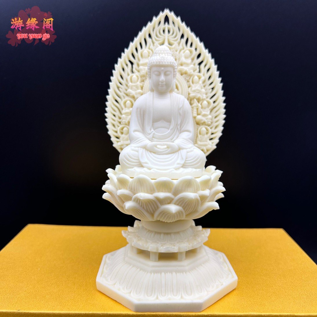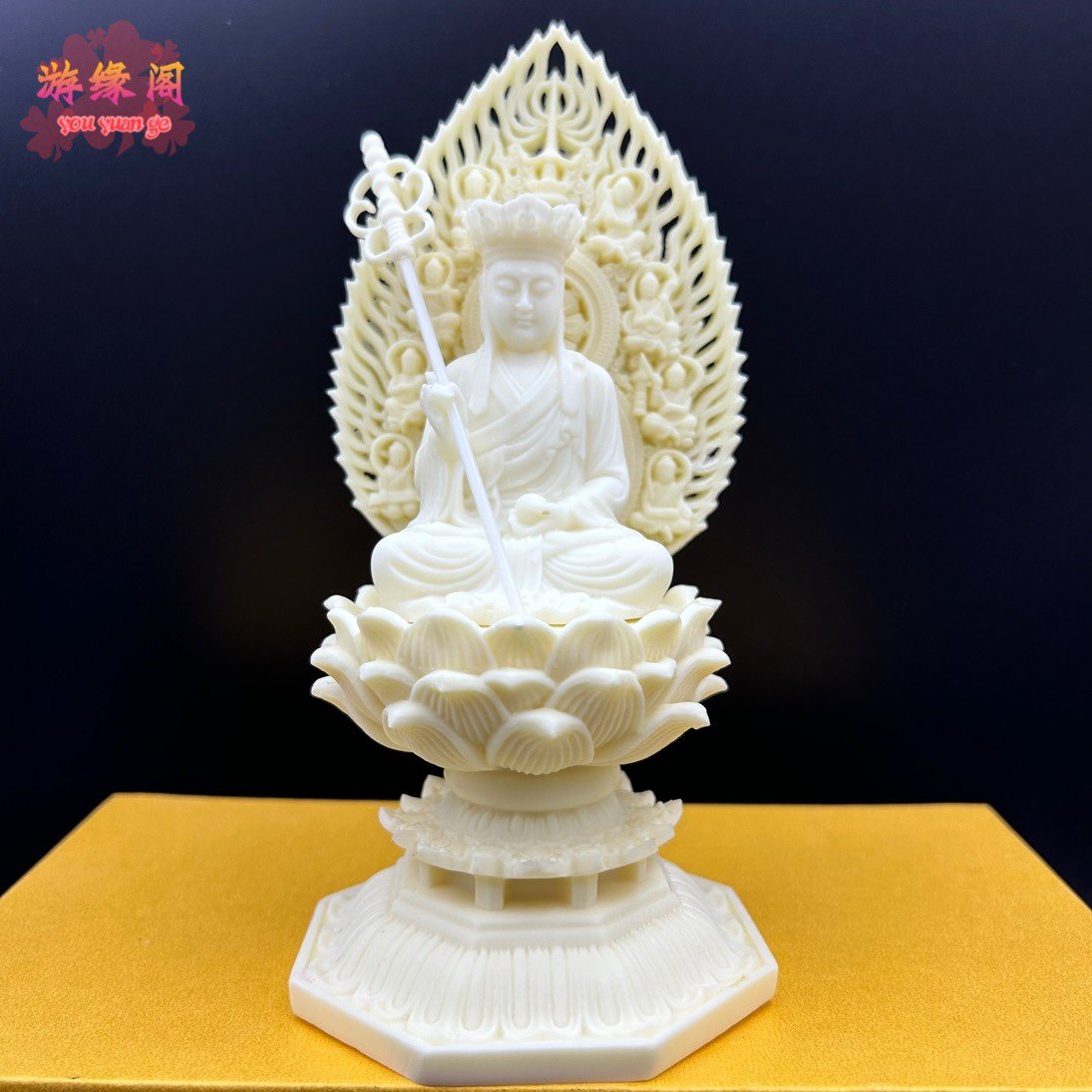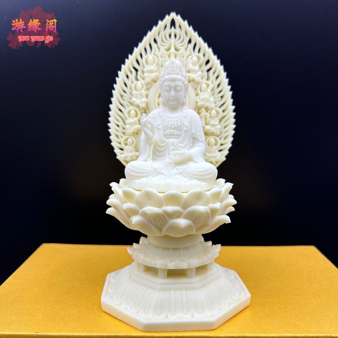 象牙果婆娑三圣坐莲花观音如来佛地藏菩萨摆件佛像工艺品保平安