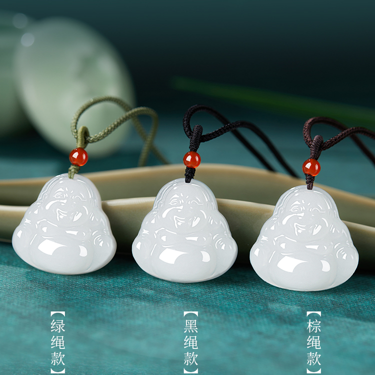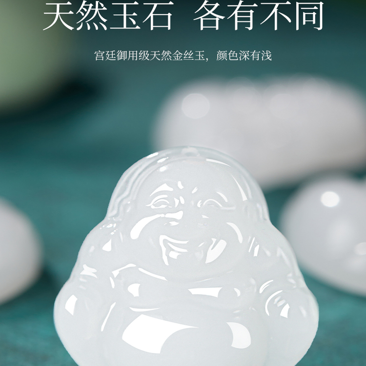 天然弥勒佛玉石玉佩护身符和田新疆羊脂白色金丝玉吊坠生日礼物女