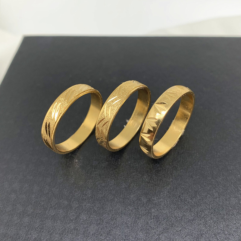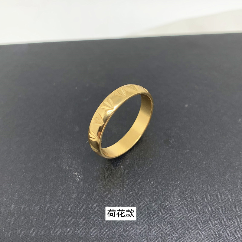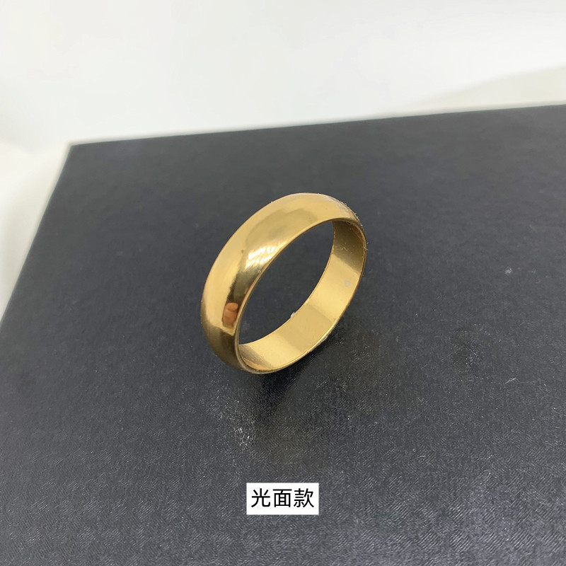 古法越南沙金男女情侣对戒黄铜镀金闭口戒指环素圈钛钢戒不掉色