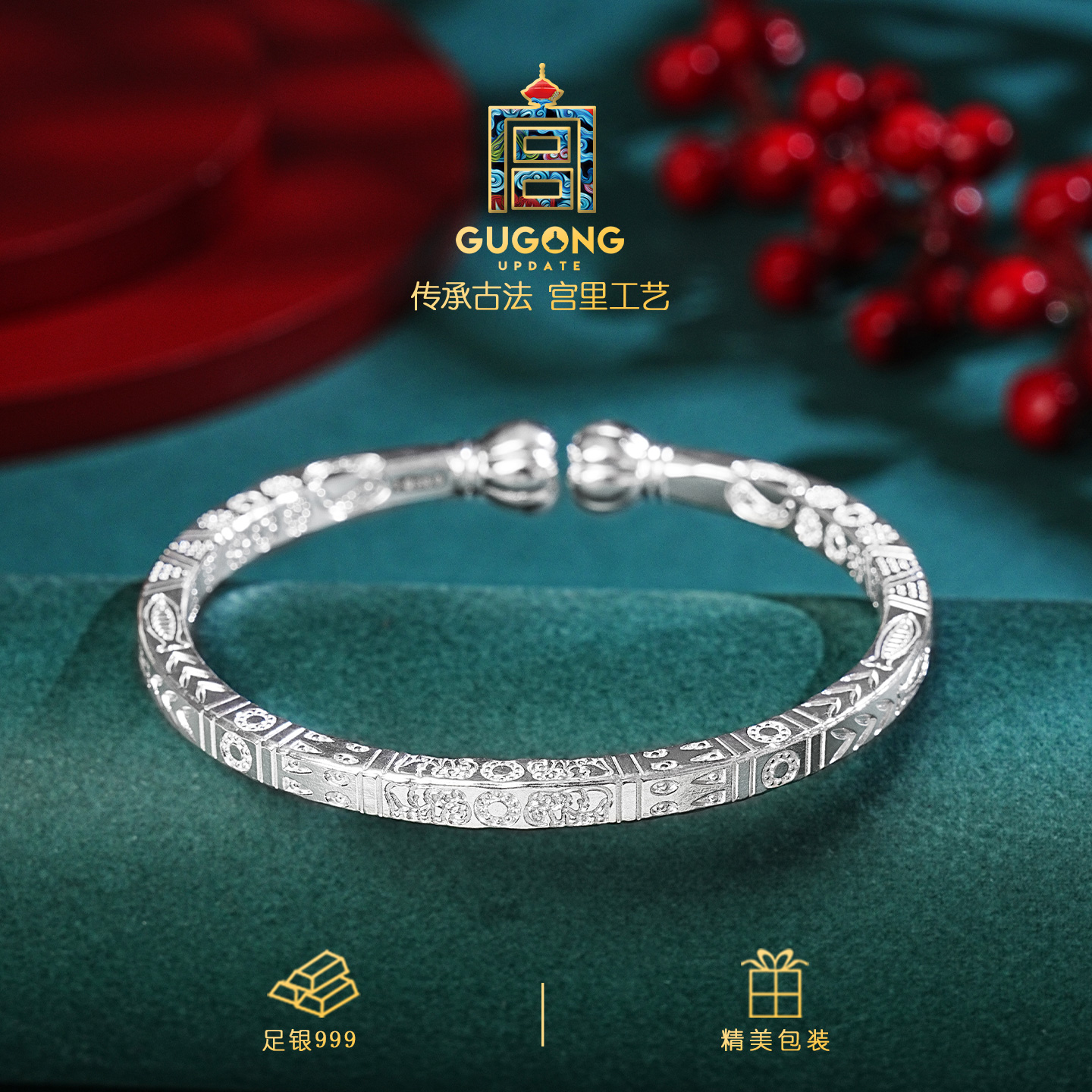 宫里上新银手镯女款正品足银999古法纯银镯子开口生日礼物送妈妈