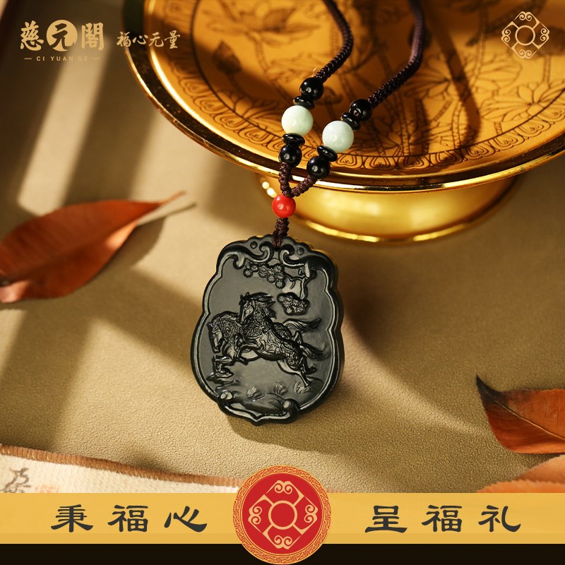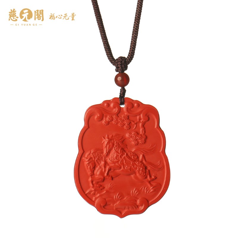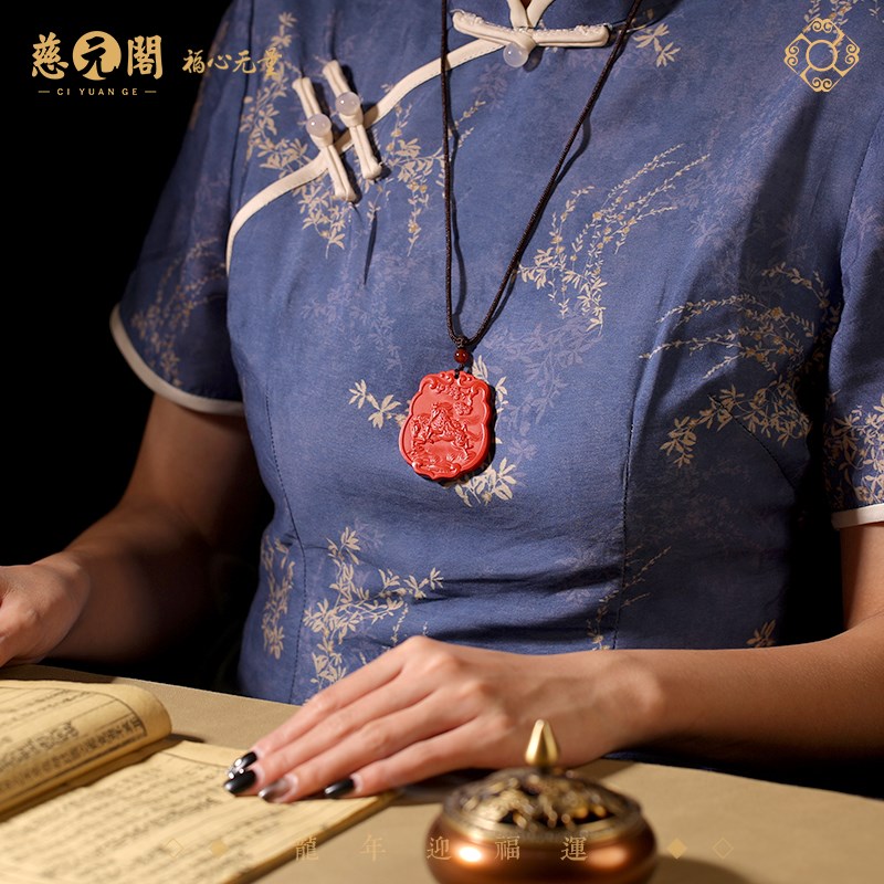 慈元阁2024生肖属虎高端吊坠链子男女款原矿朱砂原石项坠青玉挂件