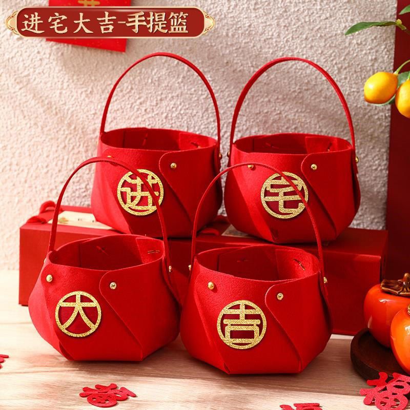 乔迁之喜新居摆件入宅大吉新房无纺布小篮子装饰果盘提篮搬家