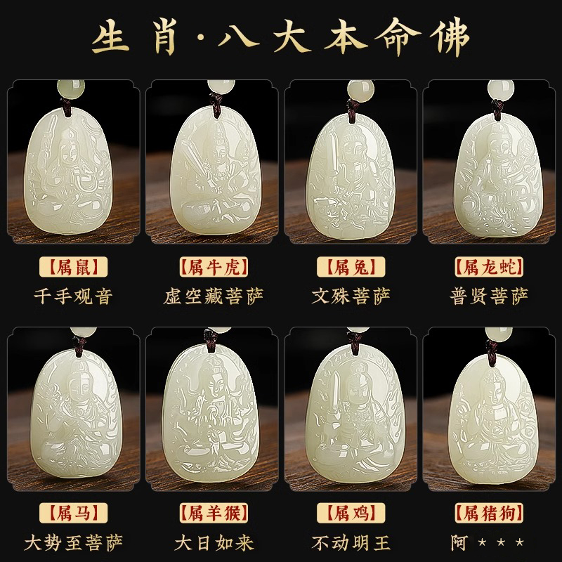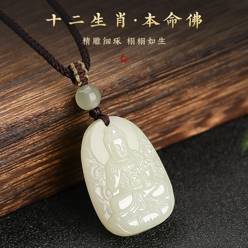 普陀山本命佛和田玉吊坠十二生肖玉佩男女款玉石项链大势至菩萨
