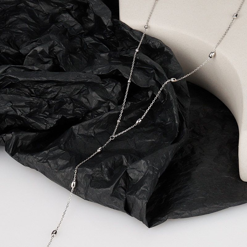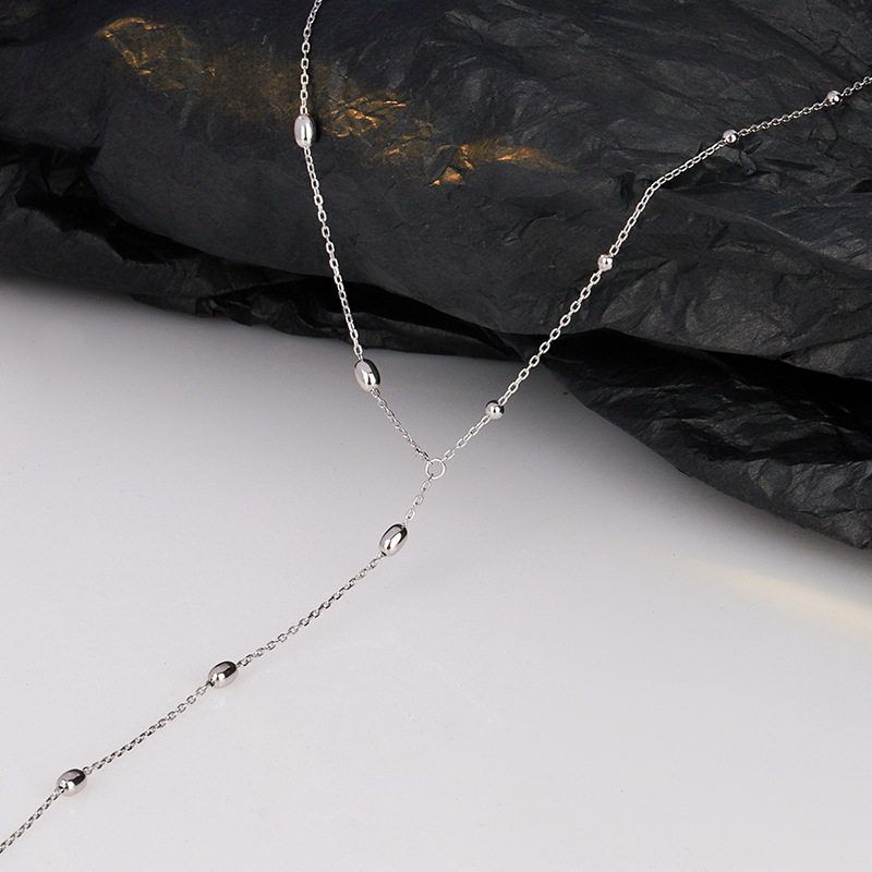 韩版简约S925通体纯银珠珠项链女ins冷淡风短款流苏毛衣链