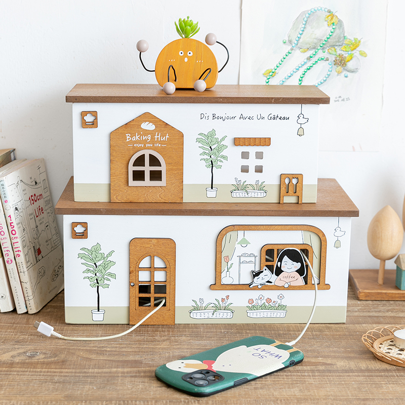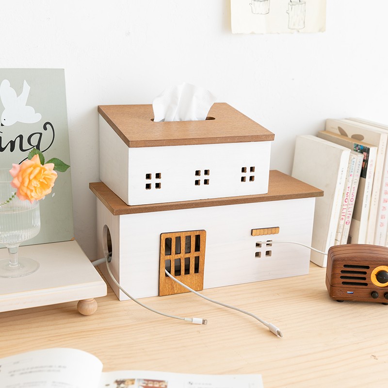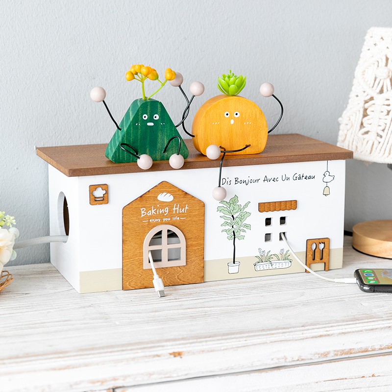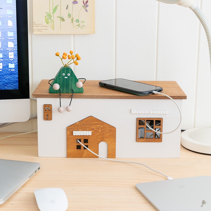 阿楹 日式轻奢高档电脑书桌电视柜摆件遮挡插座收纳盒办公室装饰