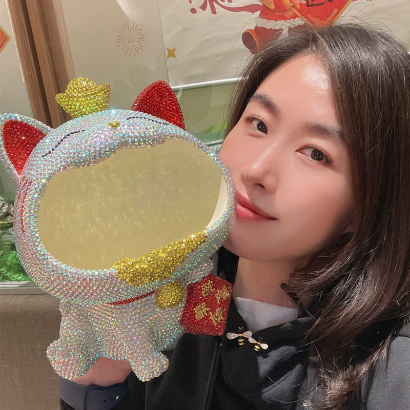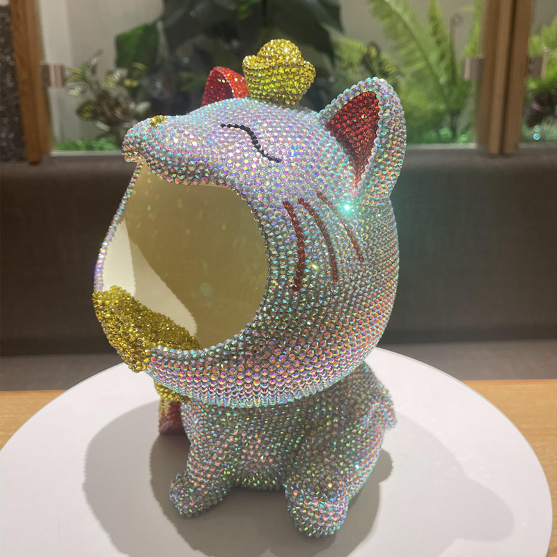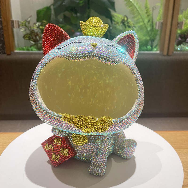 手工贴钻招财猫收纳盒储物箱摆件托盘客厅家居玄关装饰品生日礼物