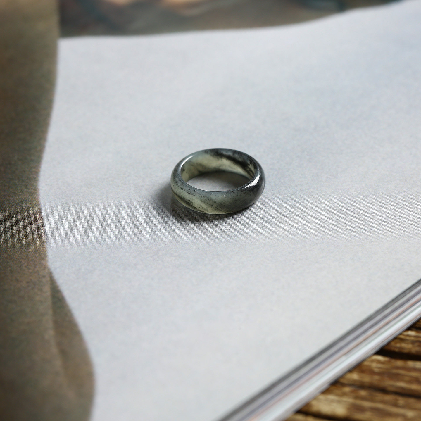 2号戒指 新疆和田玉青花小尺码圆弧素圈指环 尾戒 9324