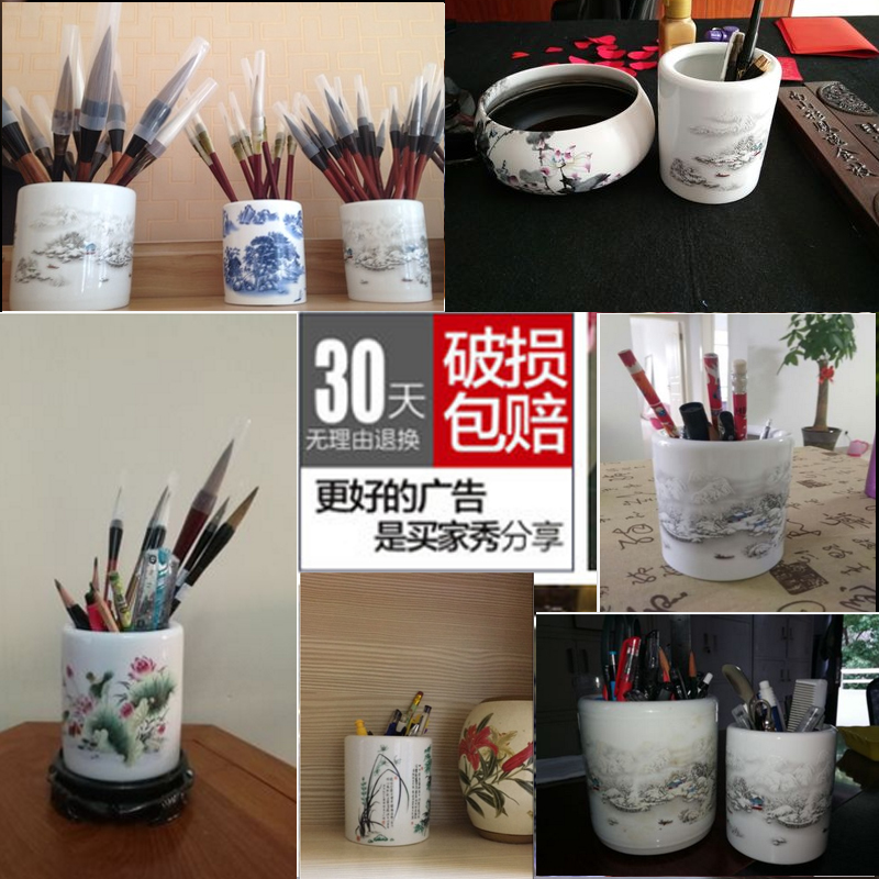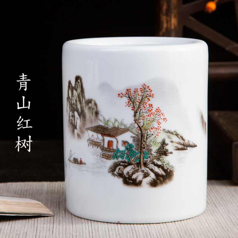 景德镇陶瓷笔筒复古中式招财摆件毛笔笔筒大容量办公书房桌面摆件