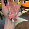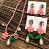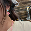 HALOkrACC韩代 春日氛围 奶油粉色樱花叶片吊坠耳环 串珠项链