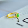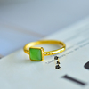 天然和田玉碧玉方形戒指925银镶碧玉菠菜绿方糖戒指中式国风礼物