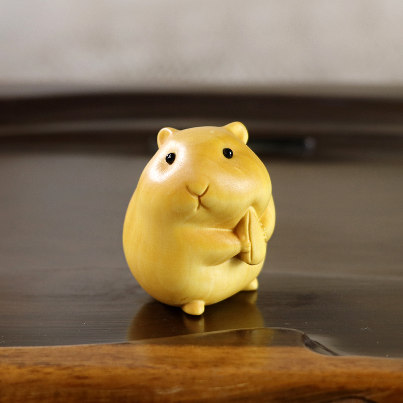 黄杨木雕手把件仓鼠萌新吃货创意小摆件木质雕刻可爱车载桌面礼品