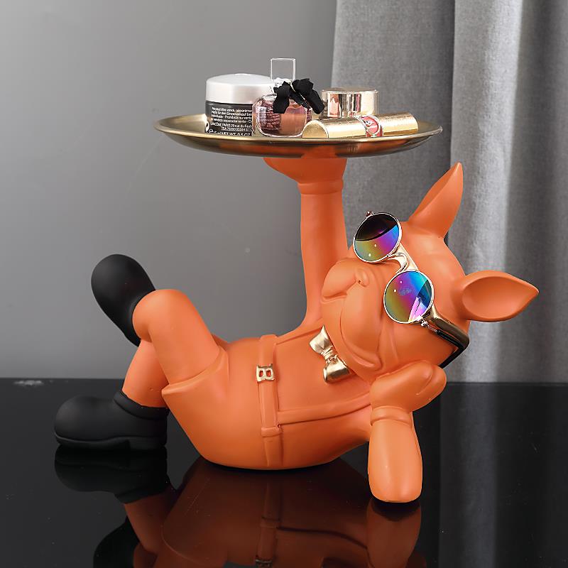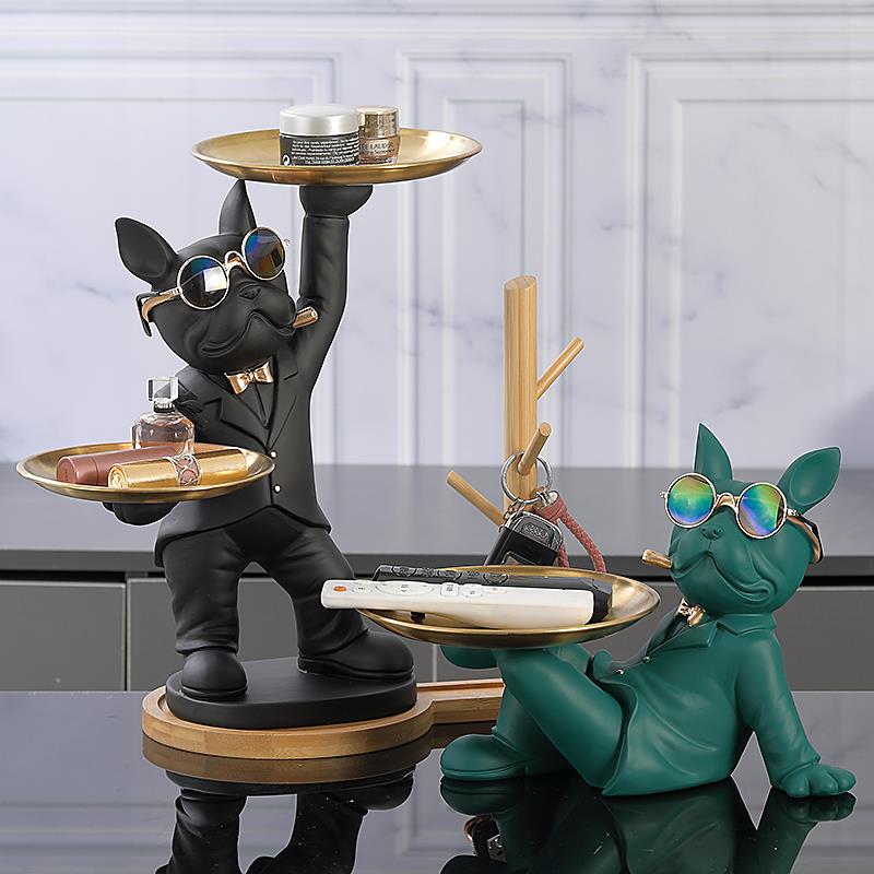 创意托盘法斗犬摆件关客家居装饰品玄511钥厅匙收纳面托盘乔桌迁