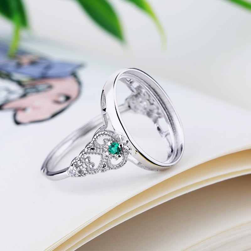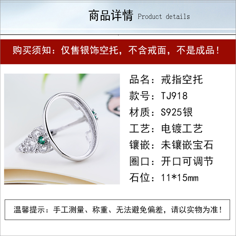 S925纯银戒指空托日韩银饰镶嵌翡翠琥珀蜜蜡开口女椭圆戒托 11*15