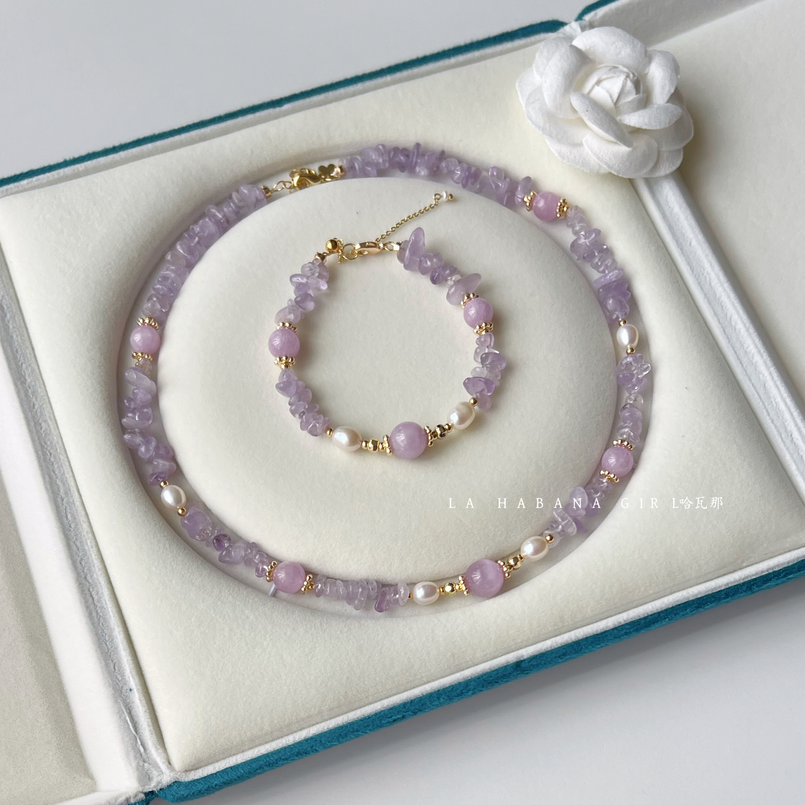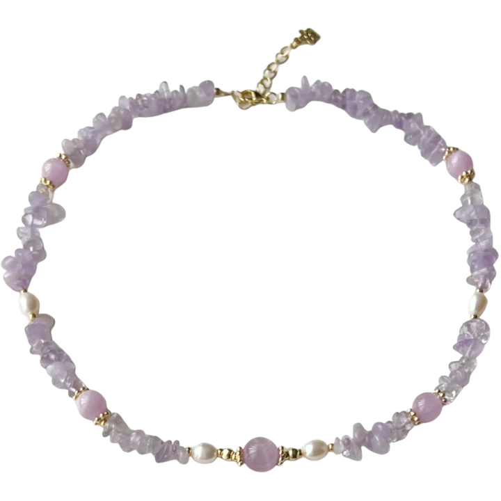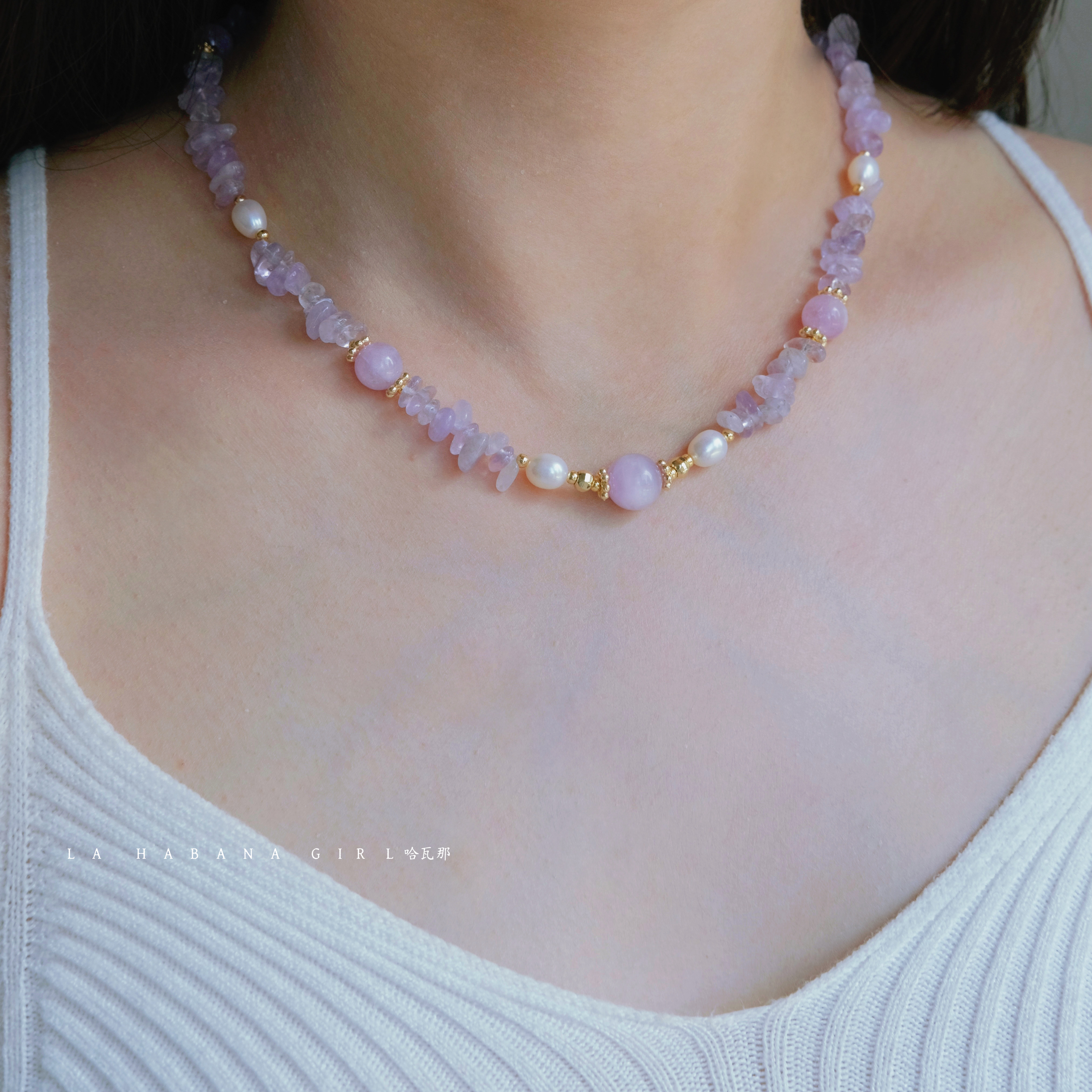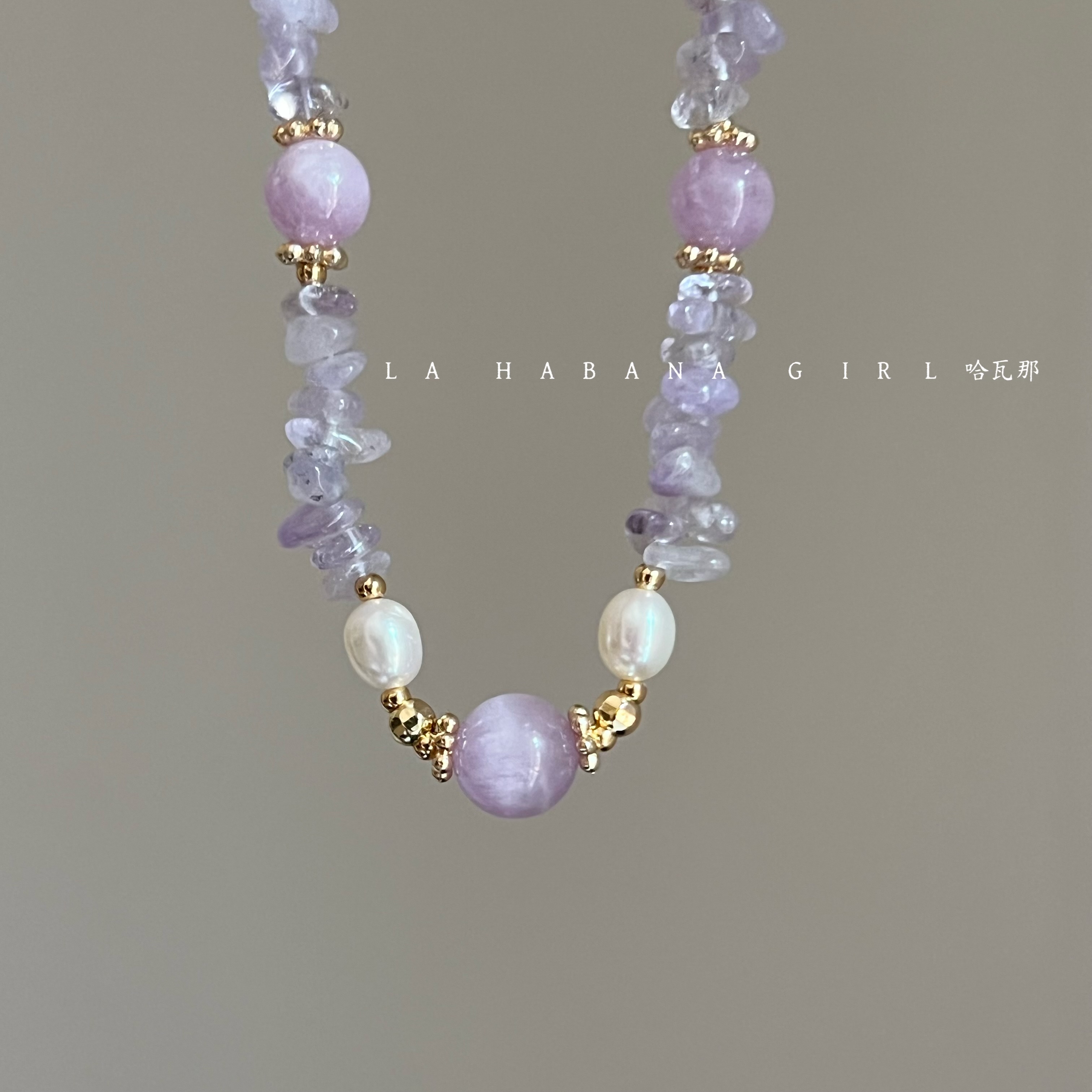 LaHabanagirl 天然水晶紫色串珠气质高级小众紫水晶不规则项链