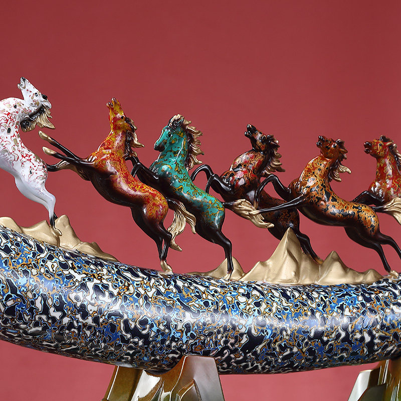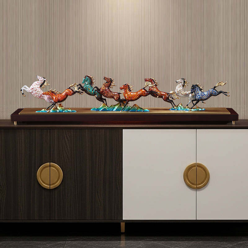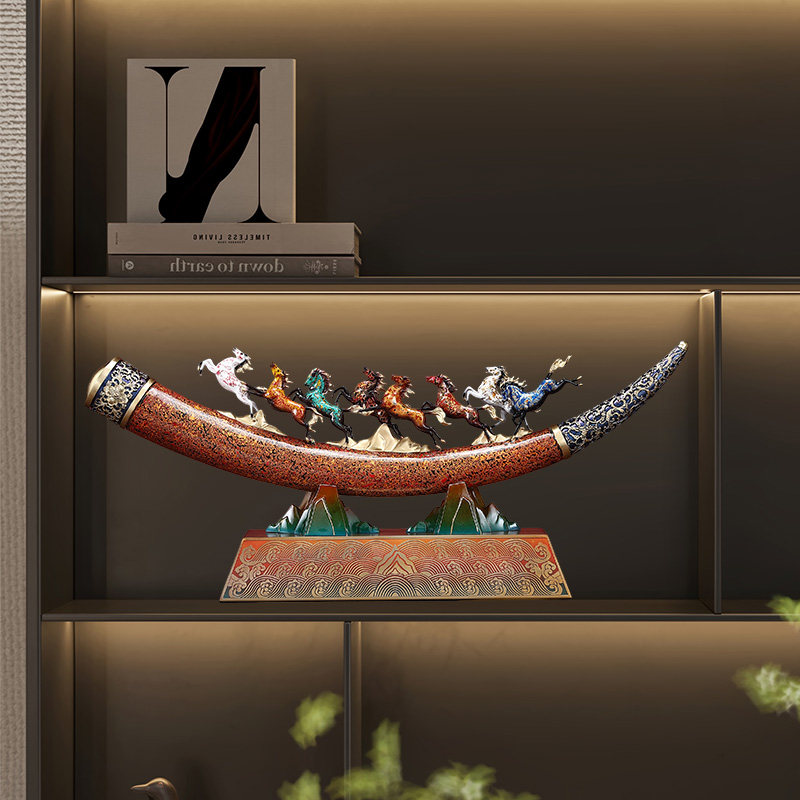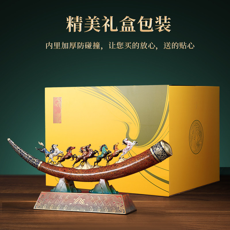 全黄铜象牙雄风八骏马摆件高档客厅玄关大厅装饰高端大气乔迁贺礼
