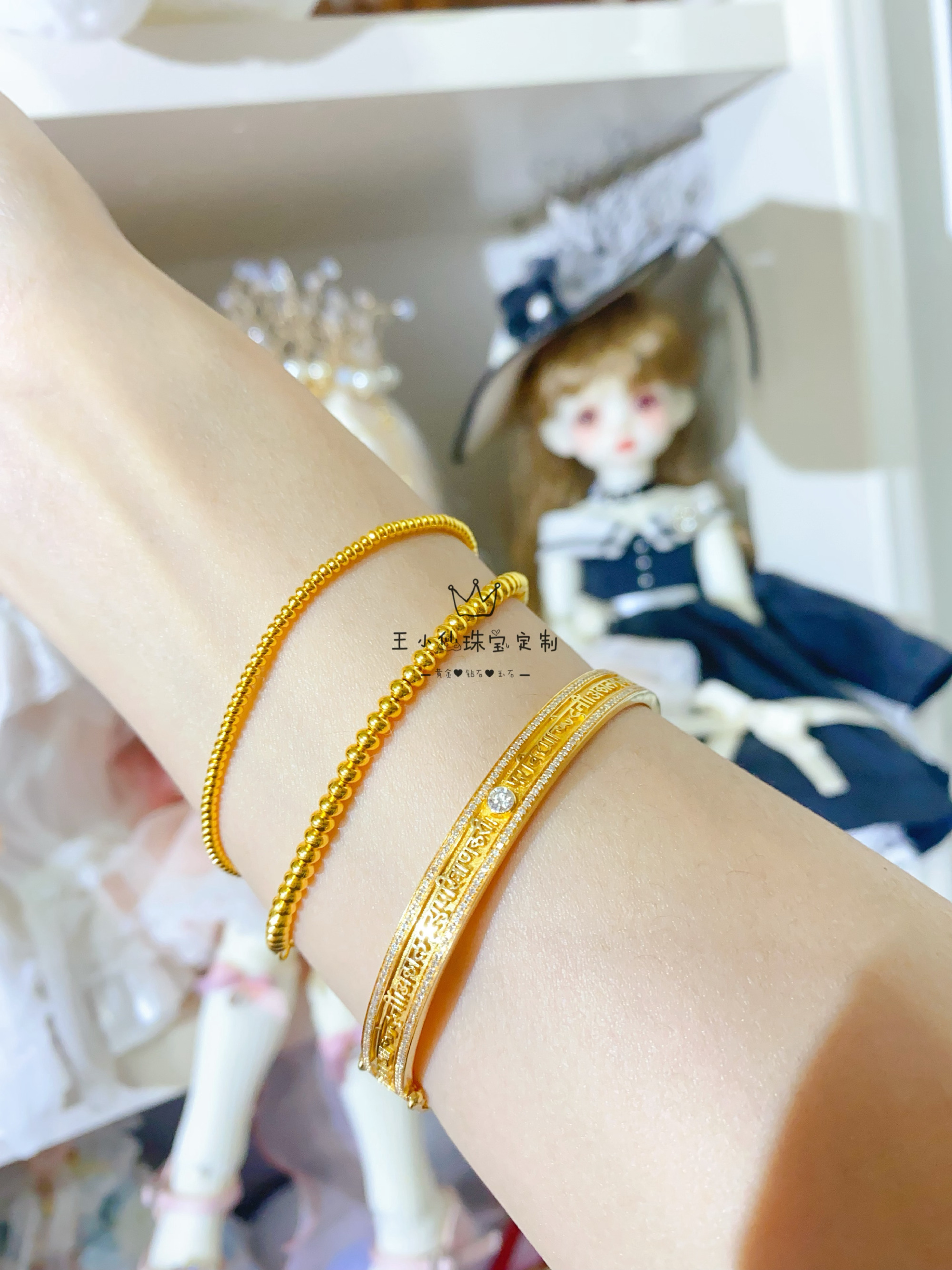 999足金精品工艺招财算盘珠3mm鱼钩扣黄金手链女