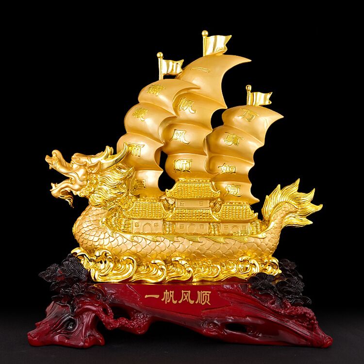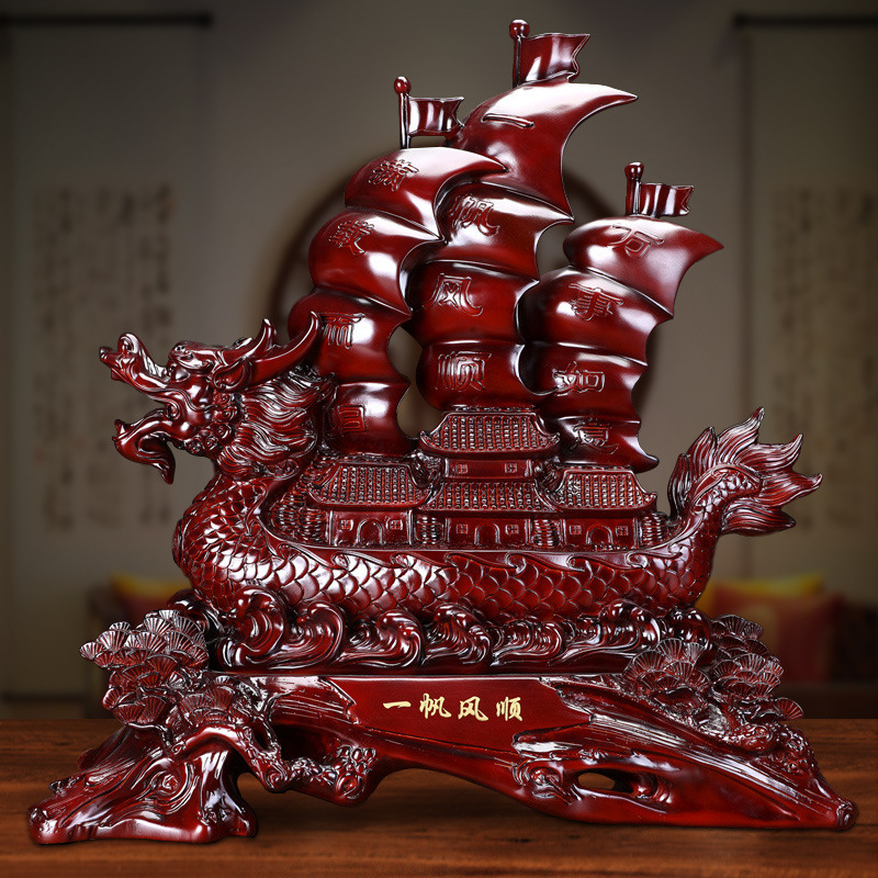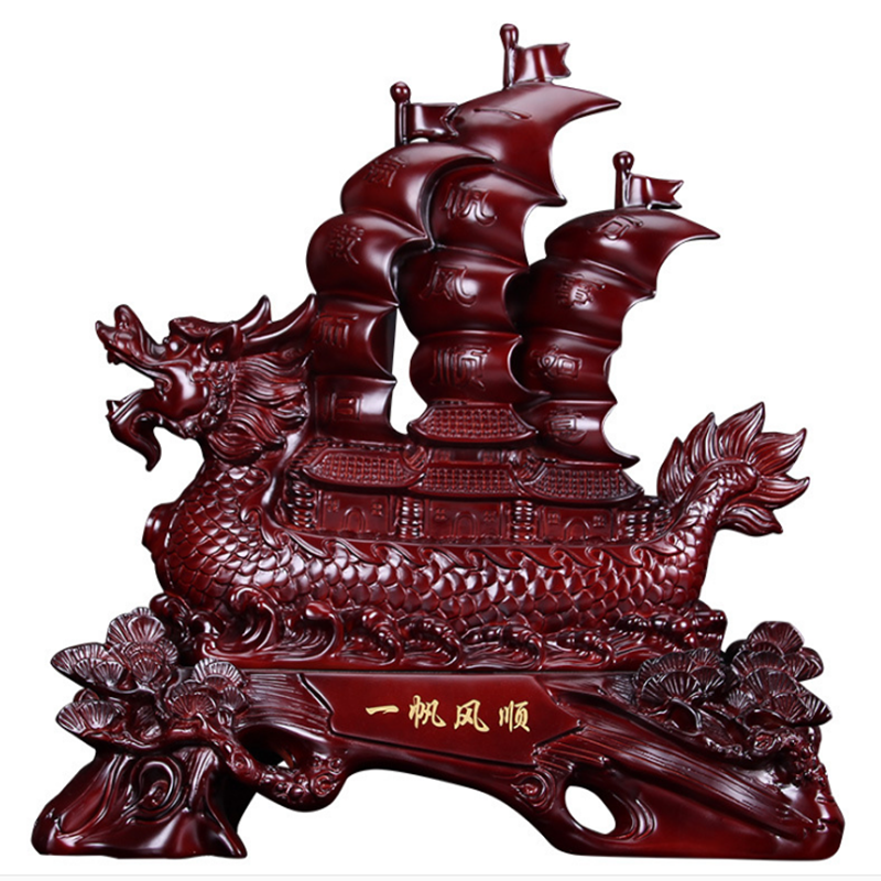 仿红木一帆风顺帆船龙舟老板办公桌摆件招财酒柜客厅工艺开业礼品