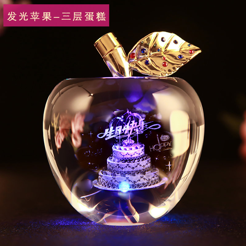 水晶苹果diy定制诞节礼物送女生朋友生日创意摆件刻字平安夜礼物