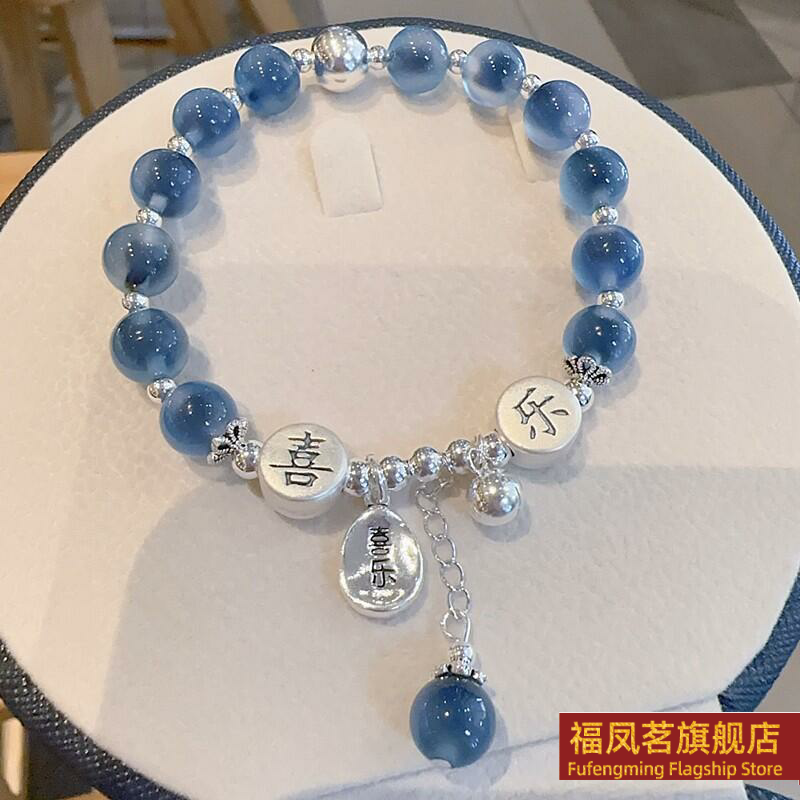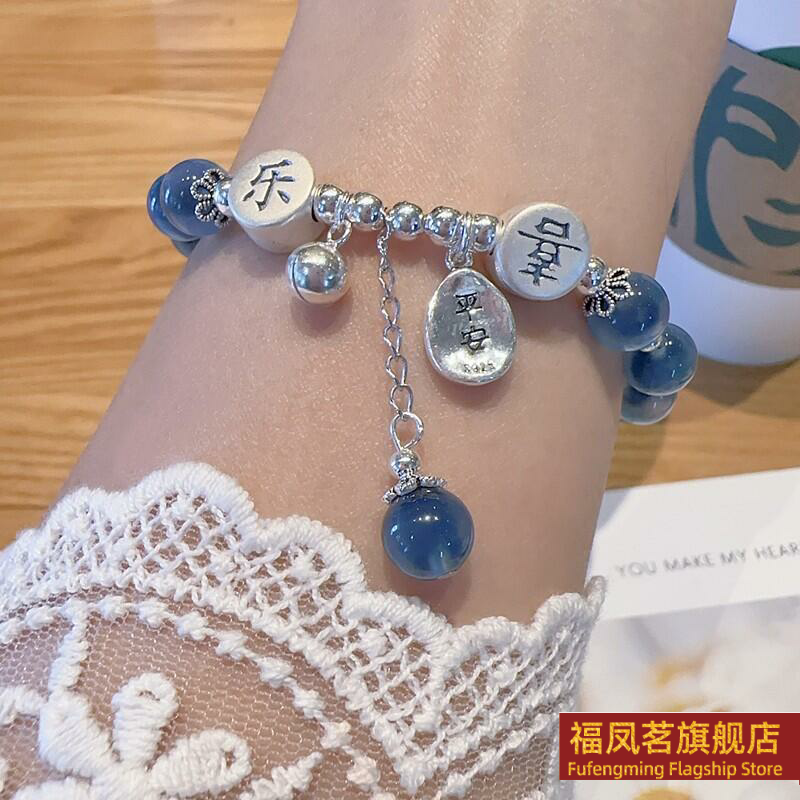 正生新款糖心玛瑙平安喜乐s925纯银手链甜心少女小众新款手串手环