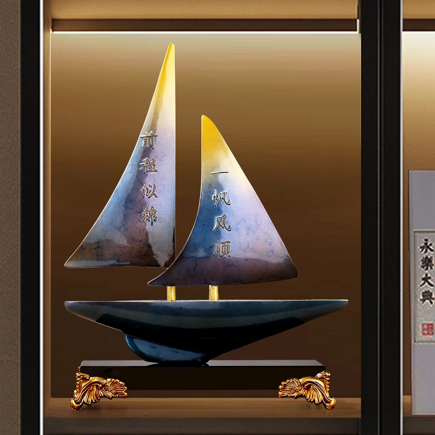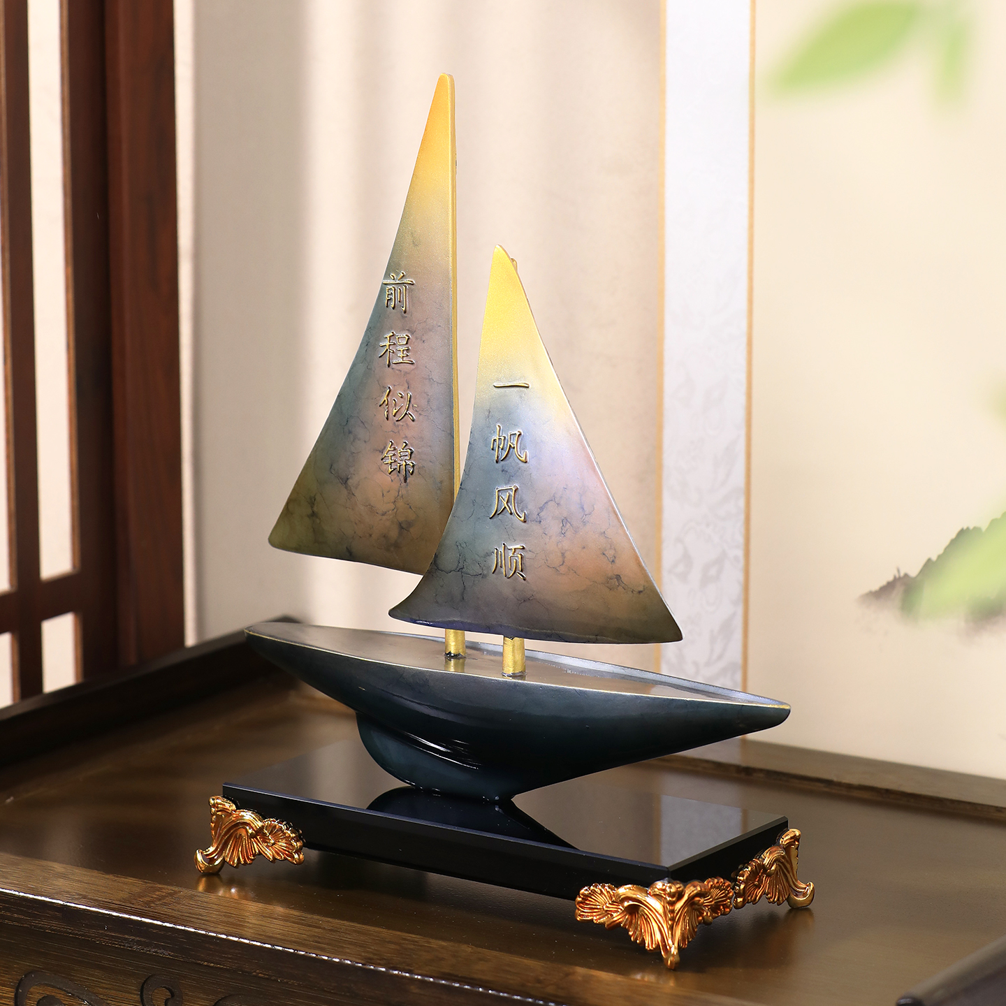 一帆风顺帆船摆件办公室桌面装饰客厅轻奢高档电视柜酒柜乔迁礼物