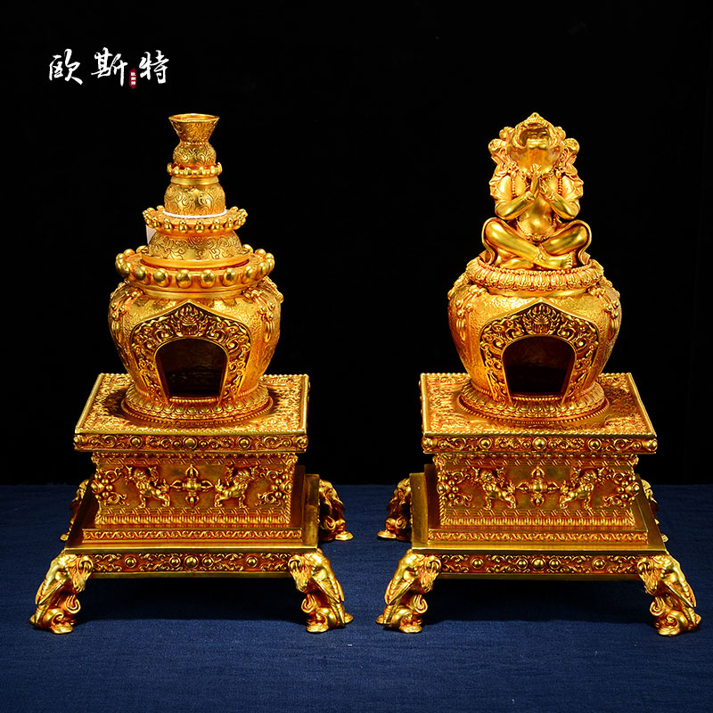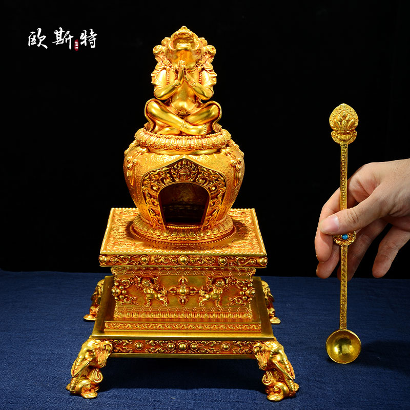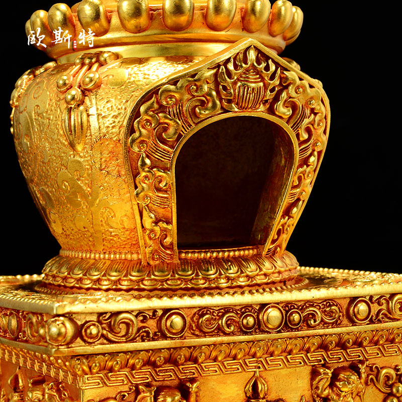欧斯特全鎏金烟供炉八吉祥雕花家用煨桑炉家用火供熏香炉桌面摆件